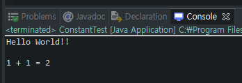 System.out.println(ConstantVO.ONE_PLUS_ONE + "\n");