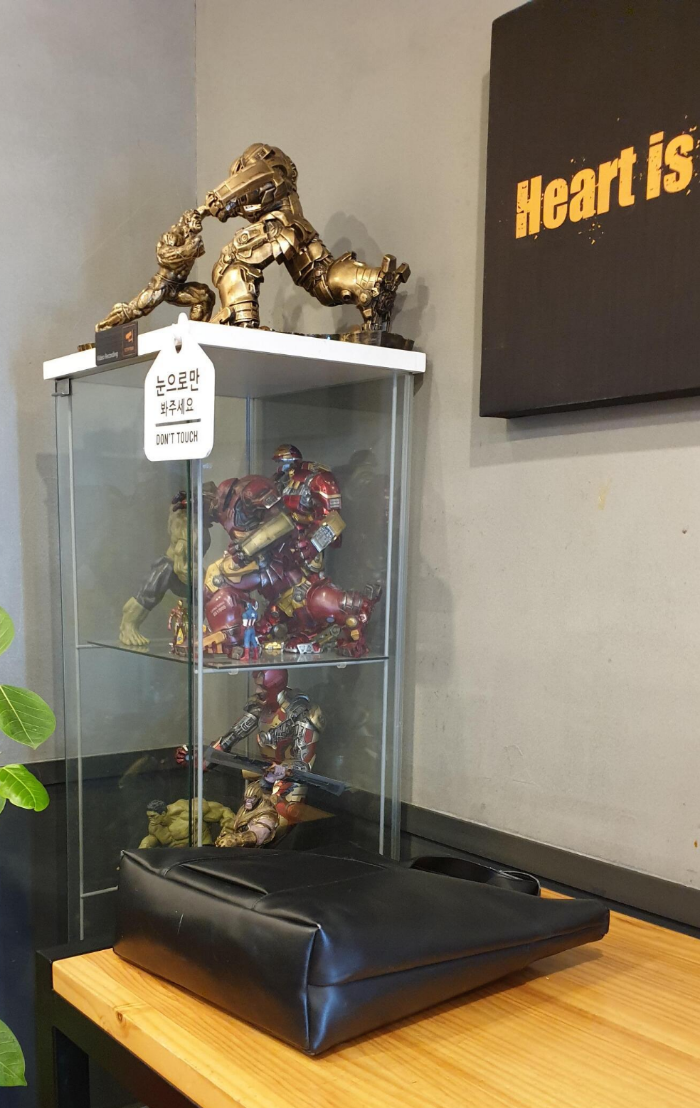 다른 맘스터치 지점과는 다르게 사장님이 피규어를 좋아하시는지 피규어가 가득해