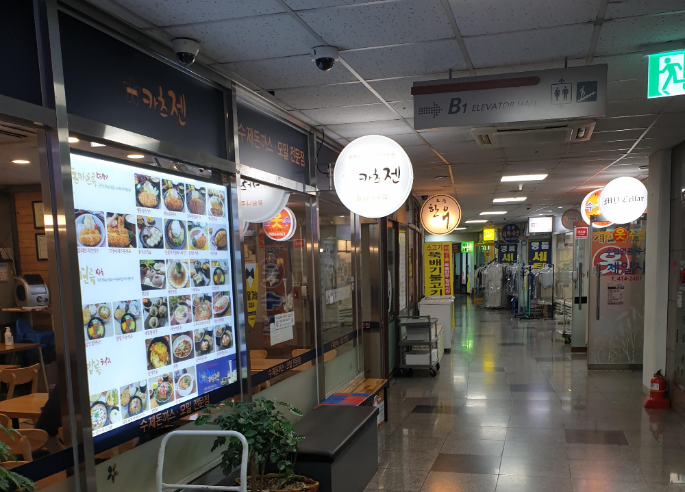 잠실나루역 1번 출구를 나와 상가 지하에 있습니다.