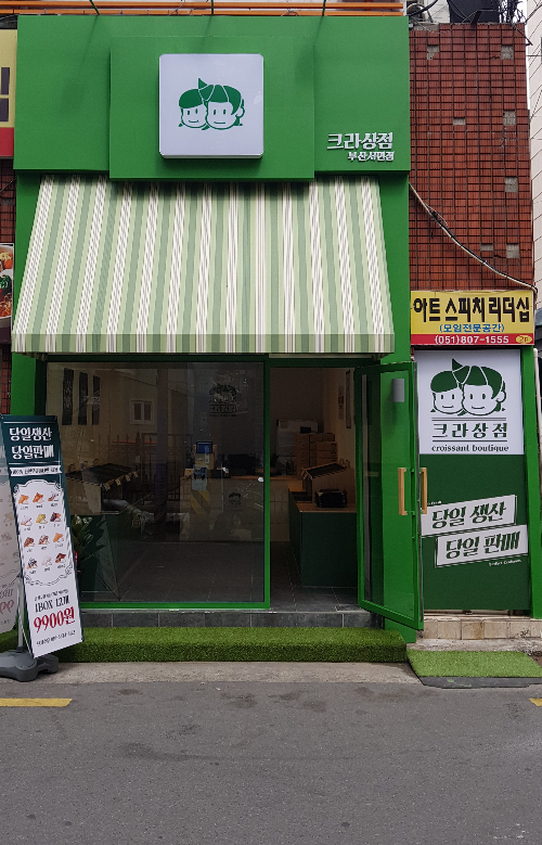 서면역에 내려서 조금 걷다보면 조그맣게 아기자기한 빵집이 반겨줍니다. 안에서 먹을 수 있는 공간은 없고 오로지 포장만 해갈 수 있어요. 가격은 크로와상 10개에 11,900원입니다.