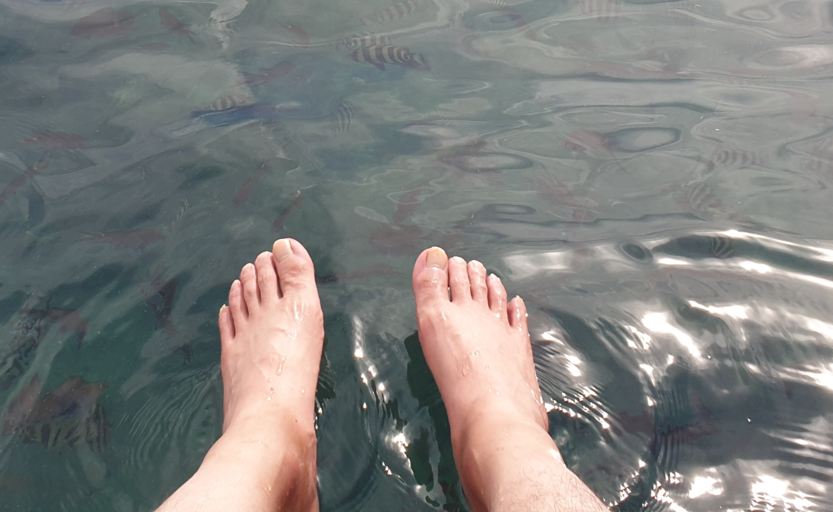 인원은 성인 3명정도가 들어가면 꽉 차는 잠수함이었어요. 배 밑에서 바다풍경을 볼 수 있습니다. 이어서 잠수함 위로 나와 발도 담글 수 있고 물 속에 빠질 수도 있었습니다.