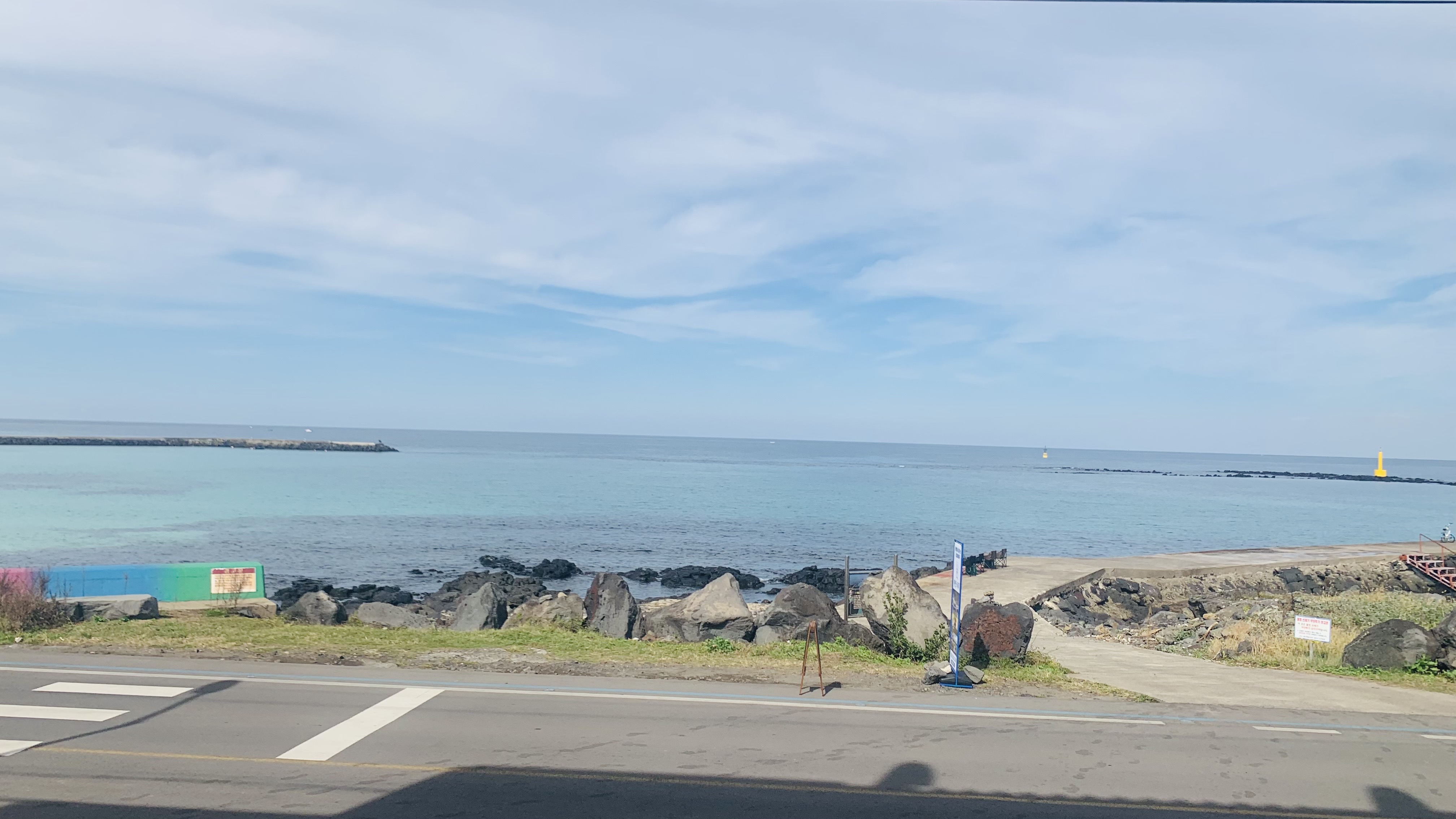 바다가 보이는 창가자리에서 여유롭게 커피를 마실 수 있는 카페였습니다.