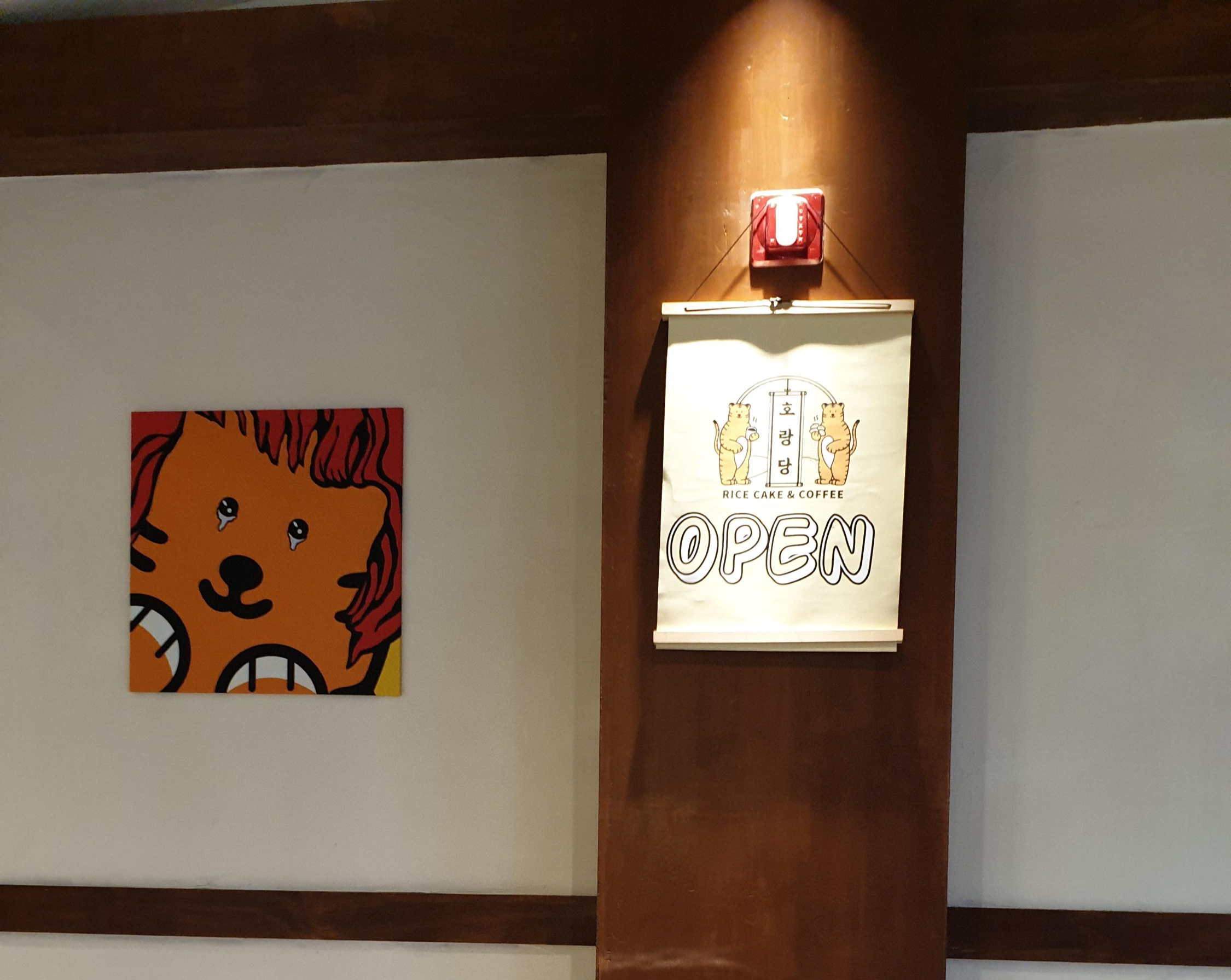 호랑이 인테리어가 귀엽습니다. 참고로 반려동물도 같이 입장할 수 있는 카페이므로 반려동물을 키우시는 분들께도 추천드립니다~