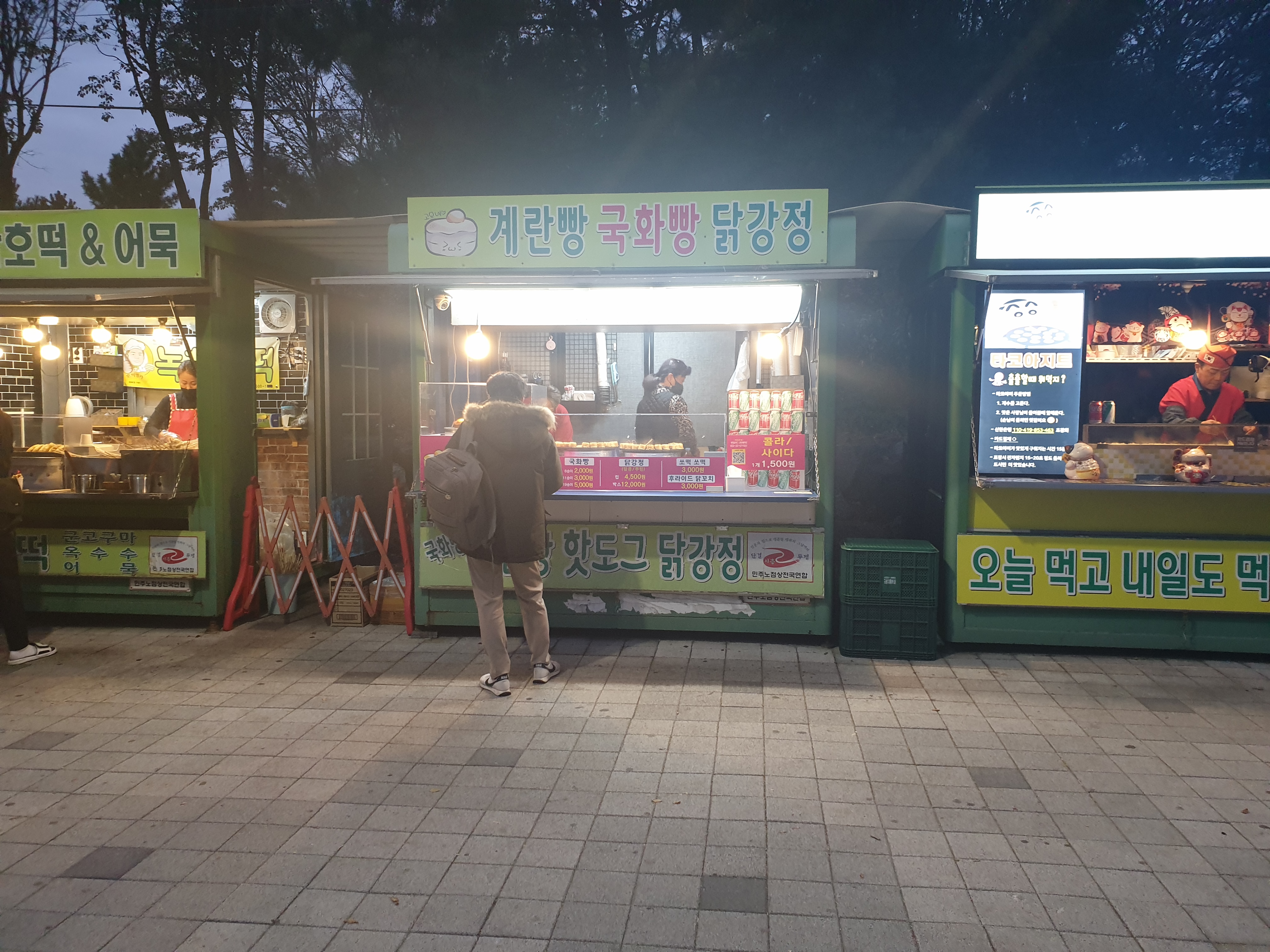 가기 전 오이도역 앞에서 계란빵을 먹고, 야구장에서 먹을 닭강정을 챙겨갔습니다.