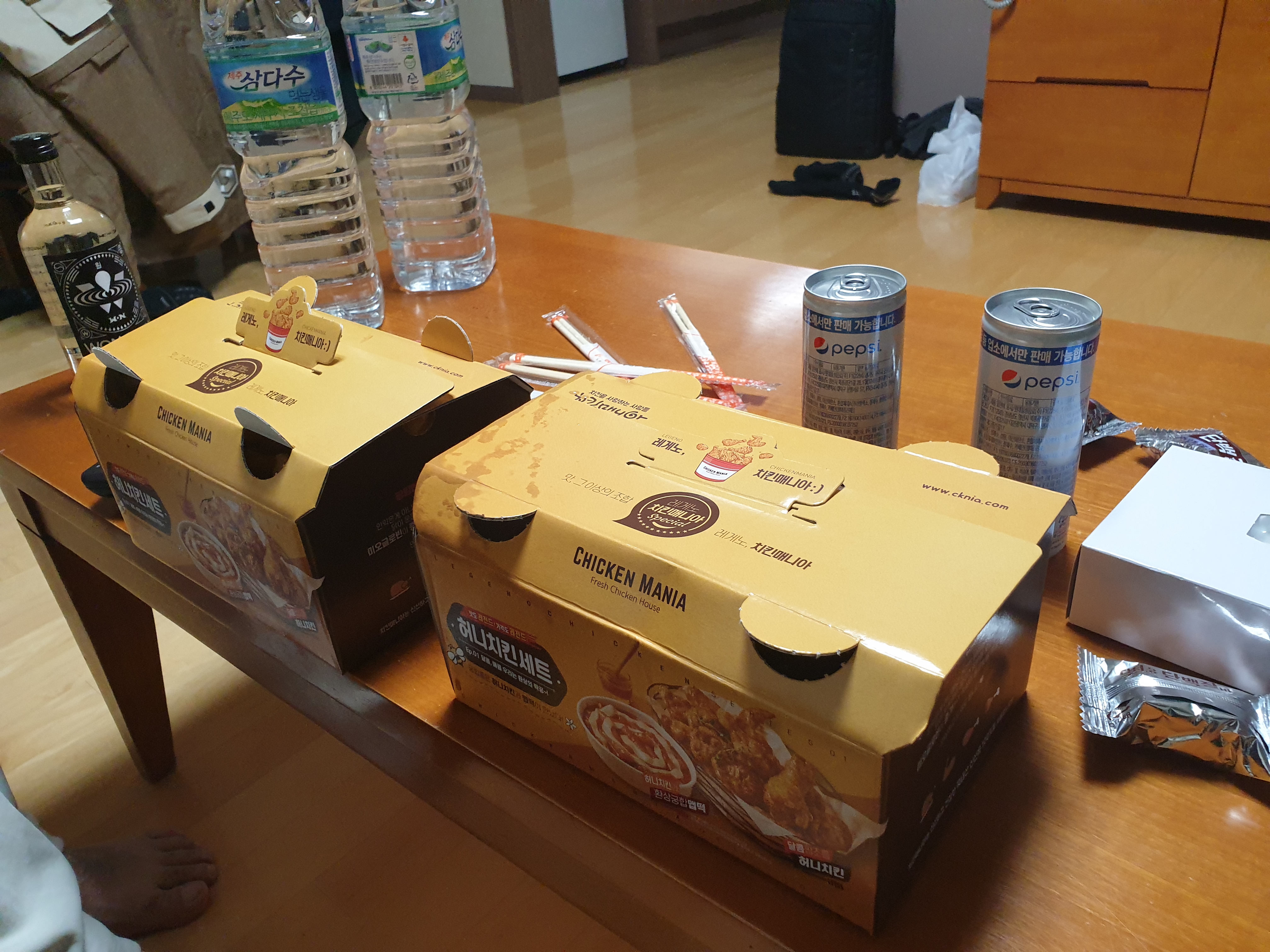 저녁은 한화리조트 안에서 치킨을 시켜먹었습니다. 가격대비 괜찮은 퀄리티였습니다. 하지만 다들 스키를 타느라 너무 피곤하여 12시에 재야의 종소리를 겨우 듣고 자러 갔습니다...ㅠㅠㅜ