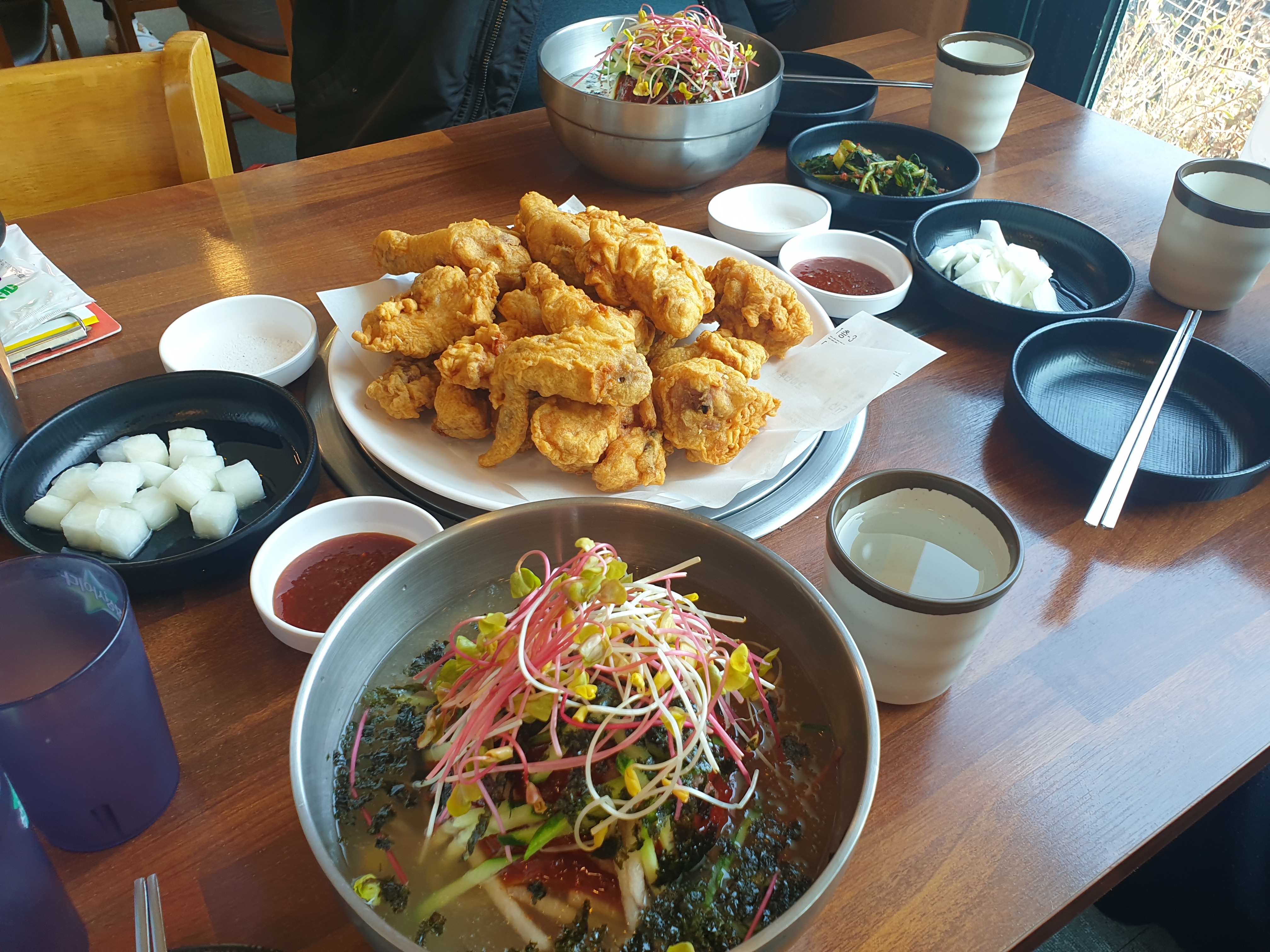 이 집의 특이한 점이라면 막국수만 파는 것이 아닌 치킨과 막국수를 같이 파는 집입니다. 처음에는 (???)를 했지만 막상 먹어보니 생각보다 괜찮은 조합이었어요. 맛 있는것과 맛 있는 것을 조합하니 배가 되는 느낌?