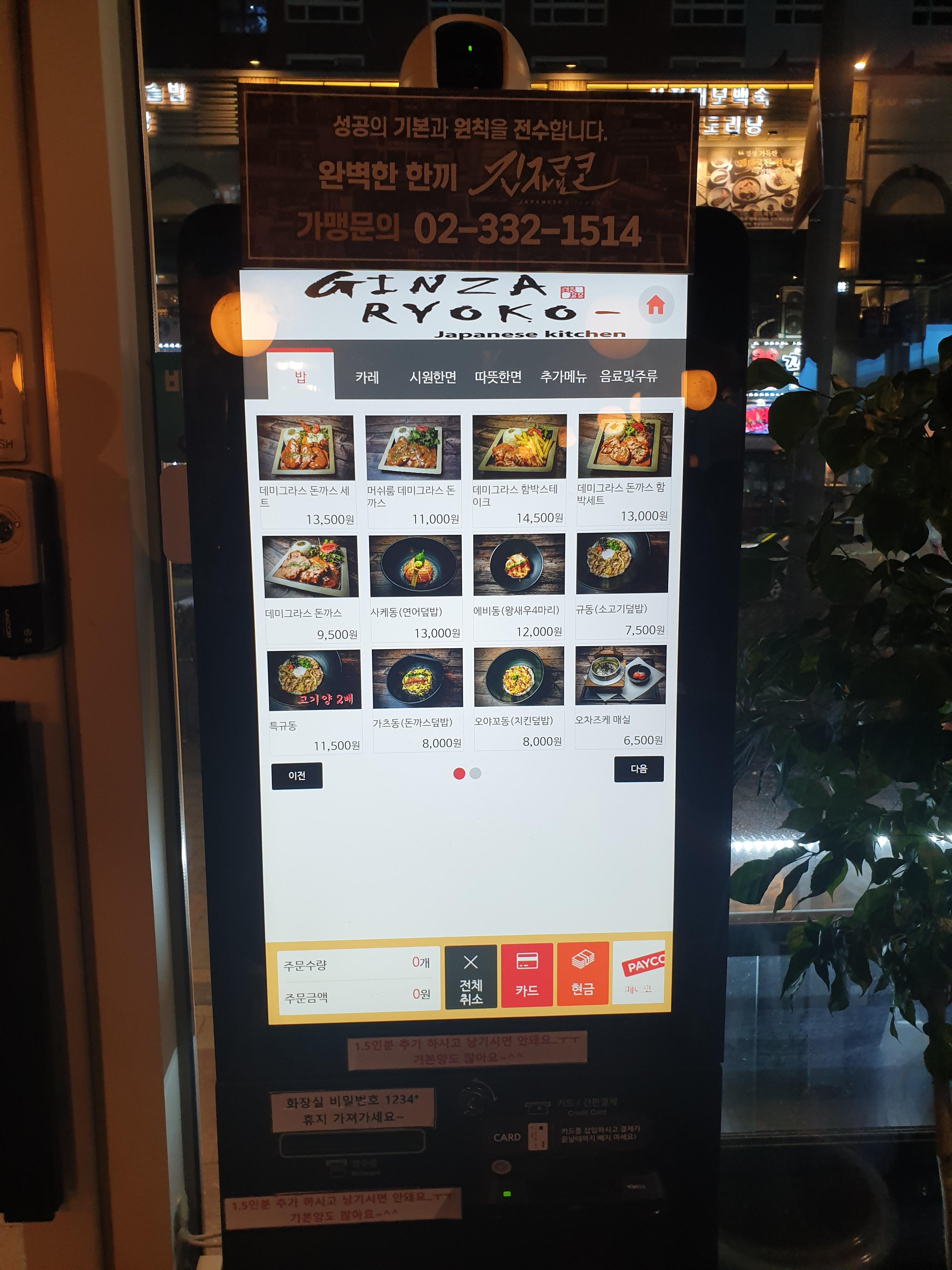 메뉴판과 키오스크입니다. 주문은 키오스크로 주문이 가능해요. 가장 메인메뉴인 데미그라스 돈까스를 먹었습니다.