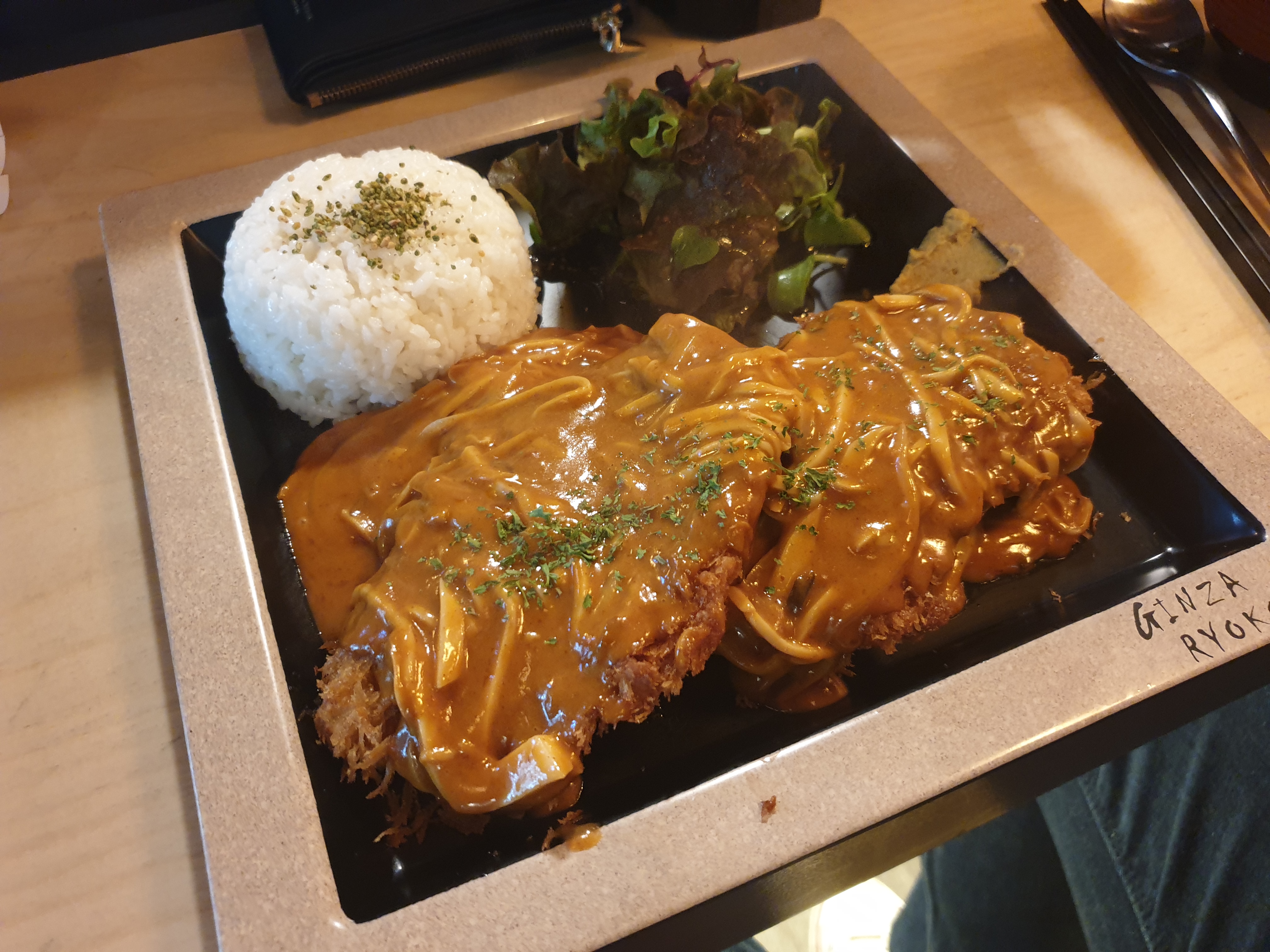 입구에서 장국, 반찬, 물은 셀프로 먹으면 되요. 이어서 나온 데미그라스 돈까스...!! 친구가 강추한만큼 맛 있게 먹었습니다ㅠㅠㅜ 오랜만에 돈까스로 제대로 입호강을 했네요.