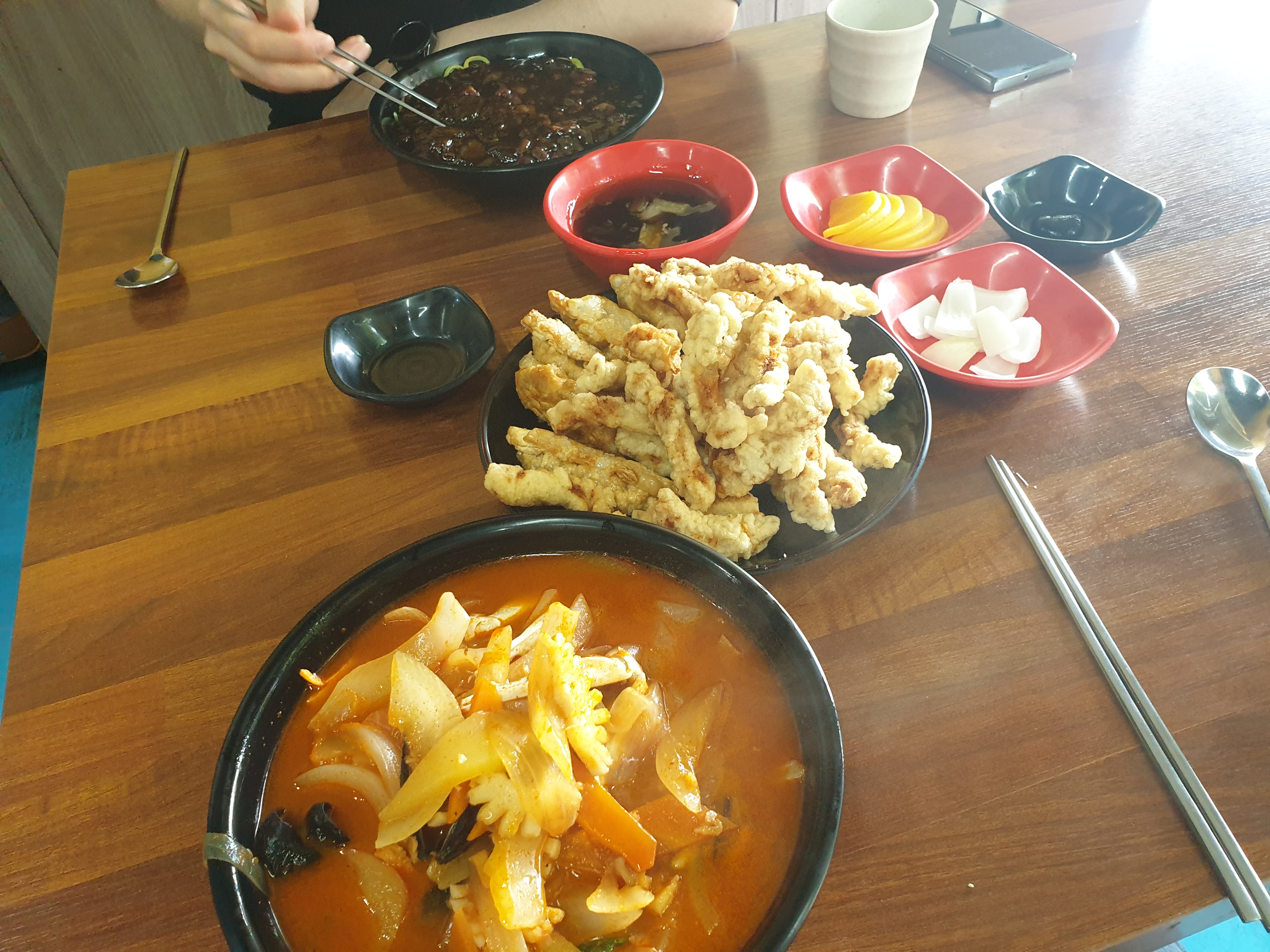 사진 순서대로 탕수육, 짬뽕, 짜장면, 전체 사진입니다. 처음에 세트를 시키면서 양이 많을 것 같아 약간 후회했는데, 그냥 쟁반짜장에 탕수육 세트를 시키는 게 나았을 것 같다는 생각이 들었습니다. 결국에는 다 먹지 못하고 사장님께서 포장해 달라고 부탁했습니다. 남은 탕수육은 영화를 보면서 즐겼습니다.