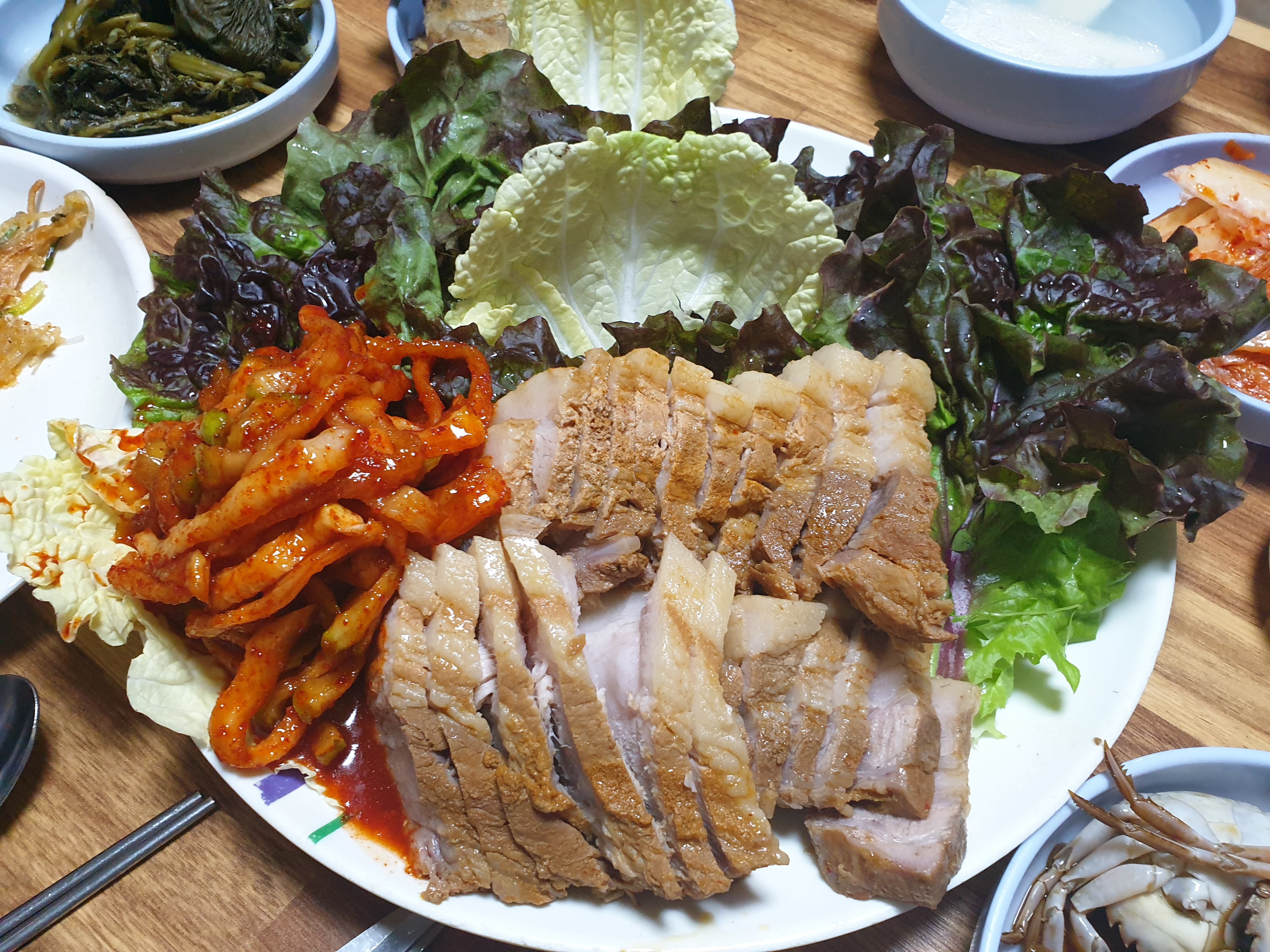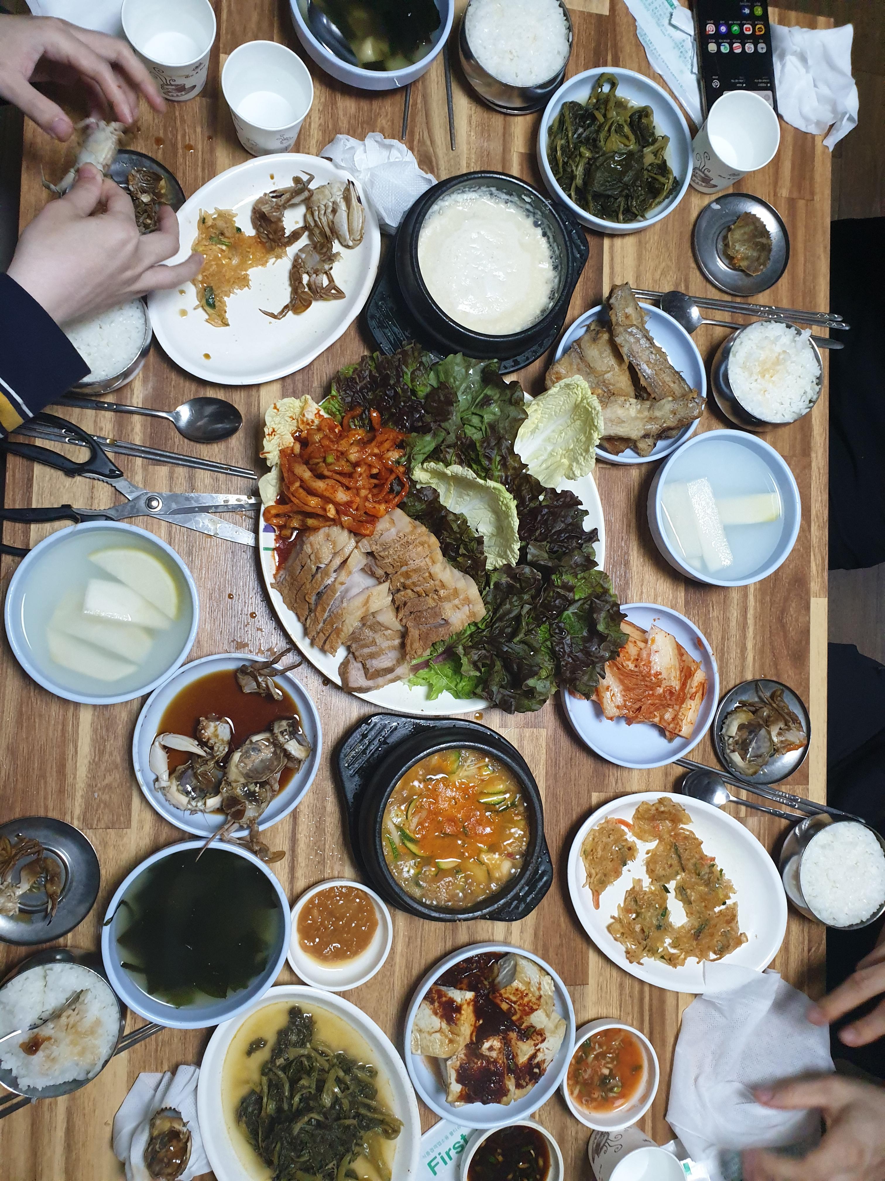 메인메뉴가 나오자마자 주문한 음식들인 보쌈 2인분, 콩비지, 된장찌개는 맛과 양 모두 훌륭했습니다. 양도 푸짐하면서도 맛도 정말 좋았습니다.