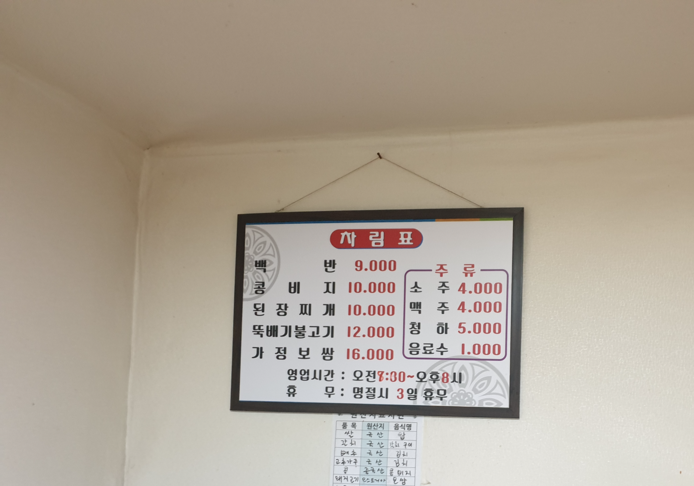 메뉴판입니다.
