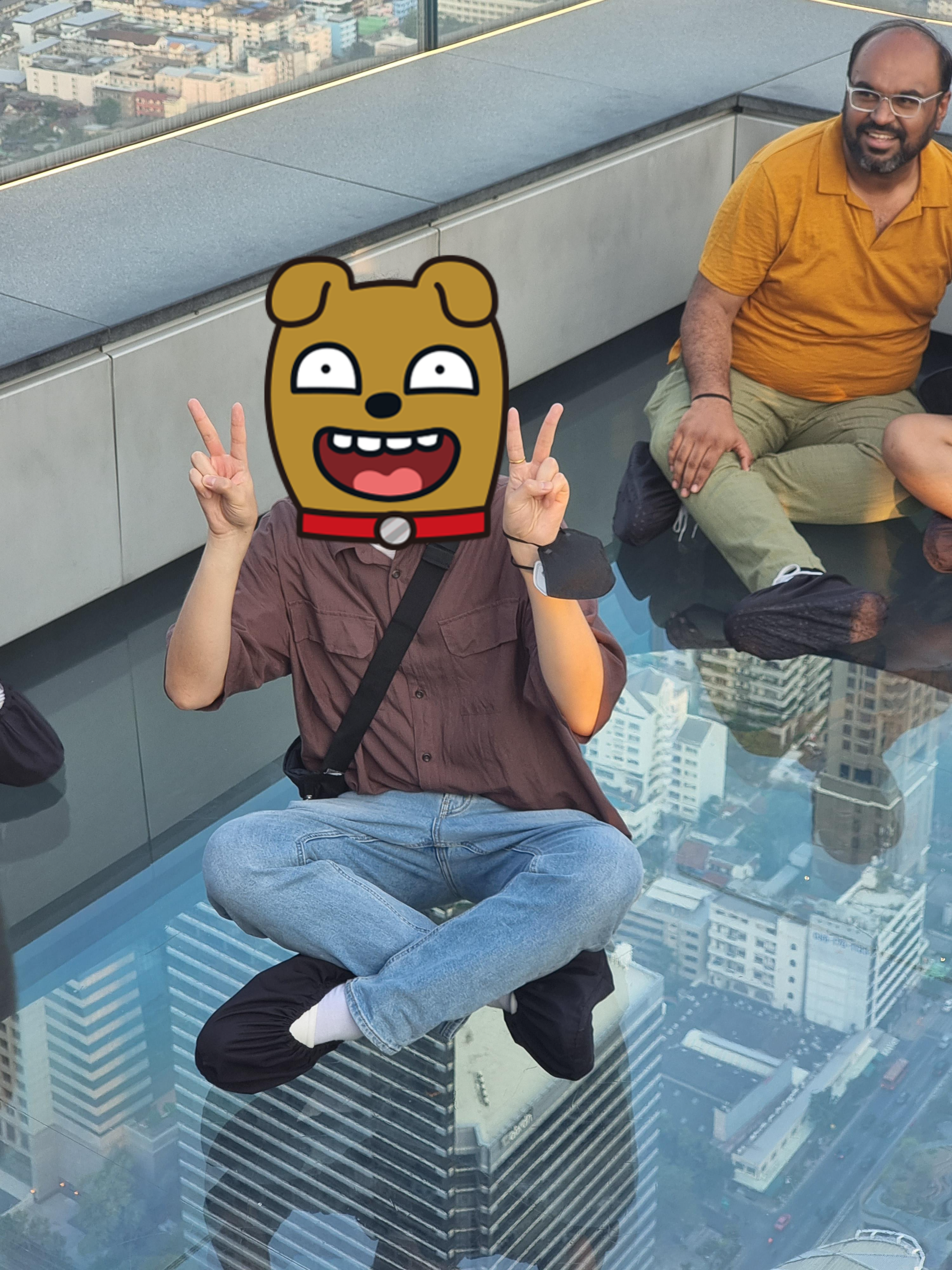 전망대에서 더 올라가면 스카이워크가 있습니다. 아래가 유리로 뚫려있는 곳에서 사진을 촬영할 수 있었는데 생각보다 너무 무서워서 사진만 찍고 저는 바로 도망갔습니다. 참고로 제가 콜라를 먹고 있는데 태국에서는 국가공휴일에 술을 못 먹는 법이 있다고 하여 이 날은 술을 먹지 못 했습니다ㅠㅠㅜ 참고바랍니다...ㅠㅠㅜ