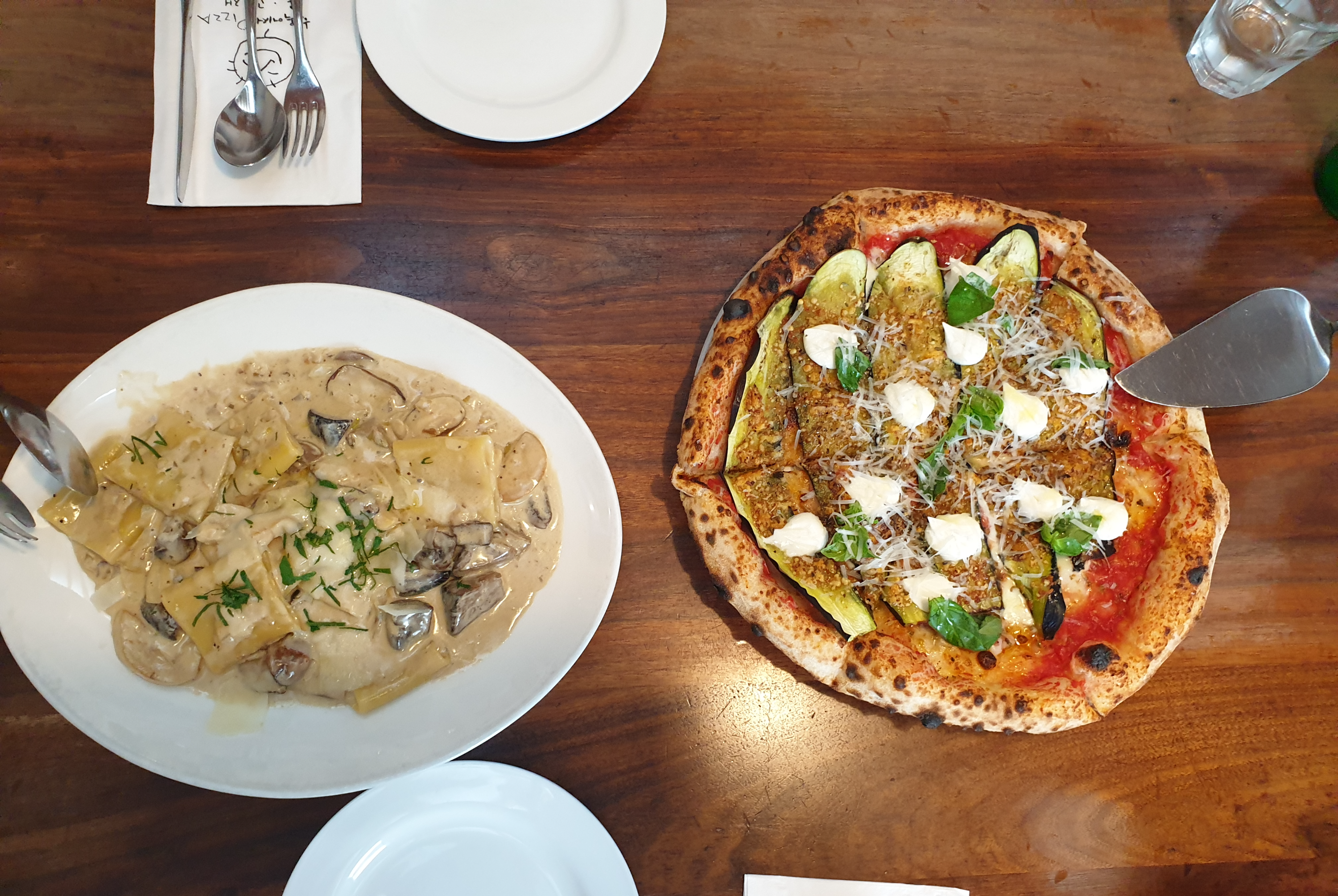 넓적한 면으로 먹는 파스타는 처음이었는데 일반 파스타랑 다르게 수저로 하나씩 하나씩 떠 먹는 재미가 있었습니다. 피자는 제가 가지를 좋아하지는 않지만 부드럽게 씹히는 식감이 좋은 피자였습니다. ㅎㅎ