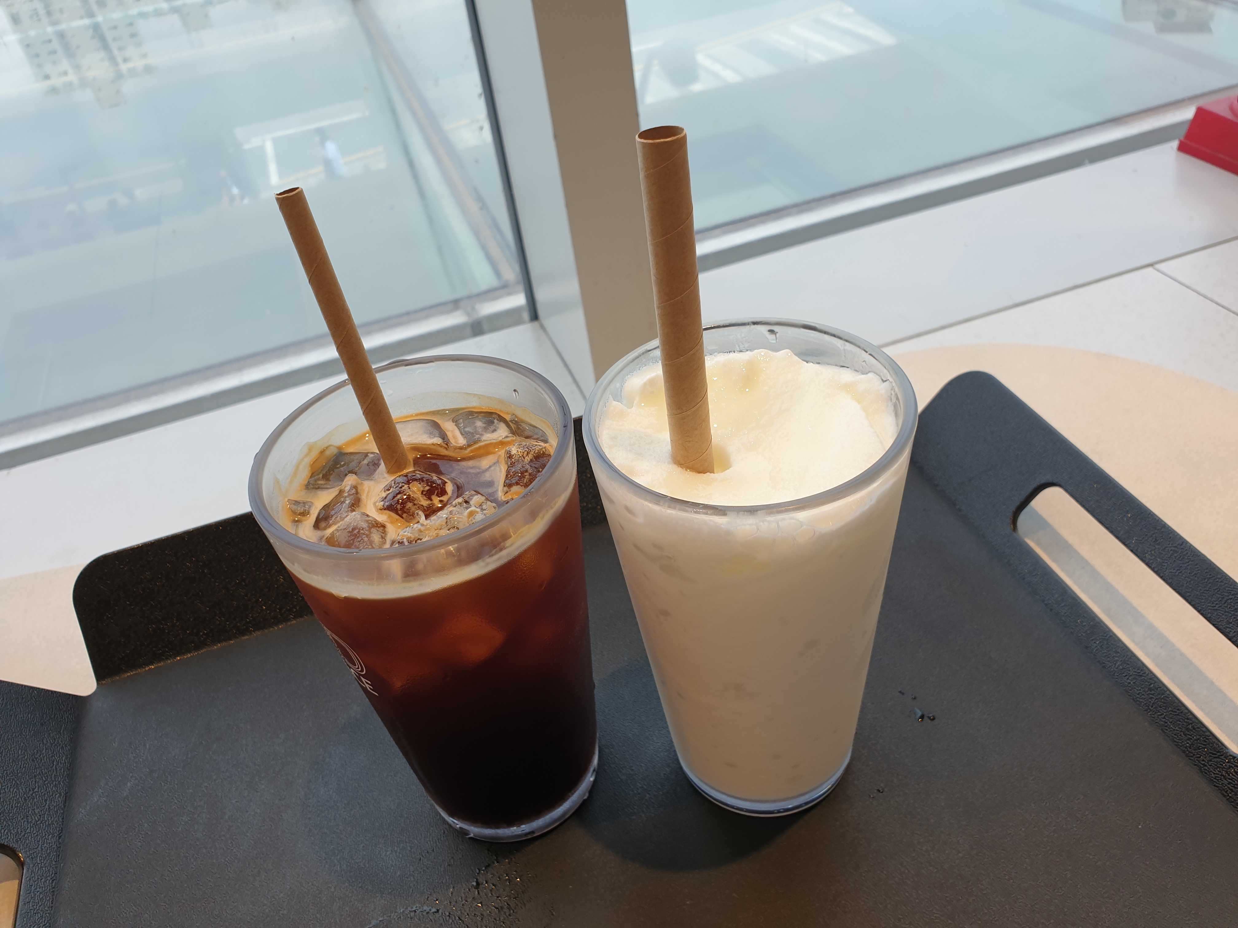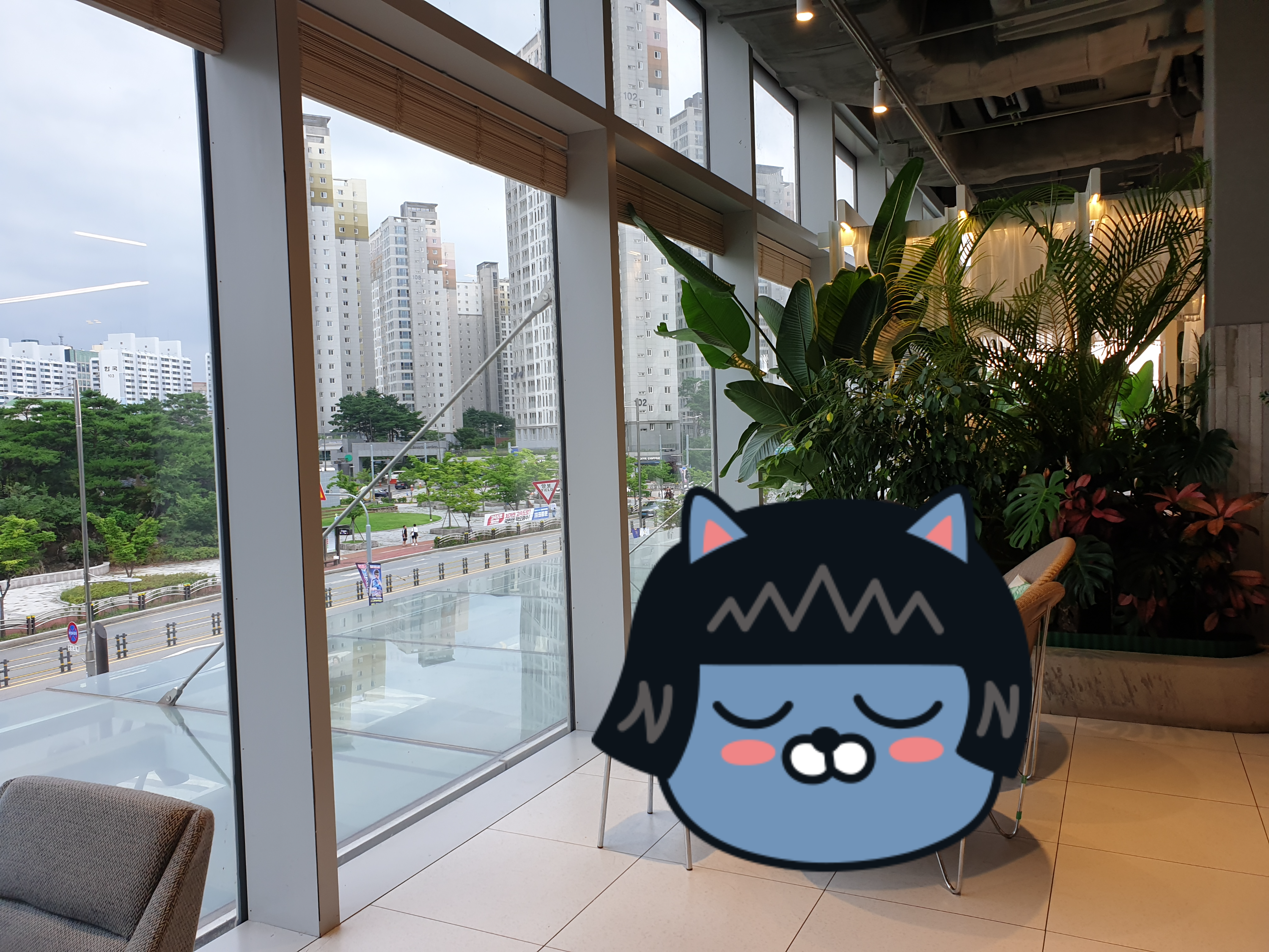 하남의 아파트와 공원을 보면서 커피를 마실 수 있습니다. 큰 유리창에 정면이 뻥 뚫려있어서 멍 때리기 좋았습니다. 그리고 사진에는 없지만 비치배드가 있어서 누워서 커피를 마실 수도 있습니다.