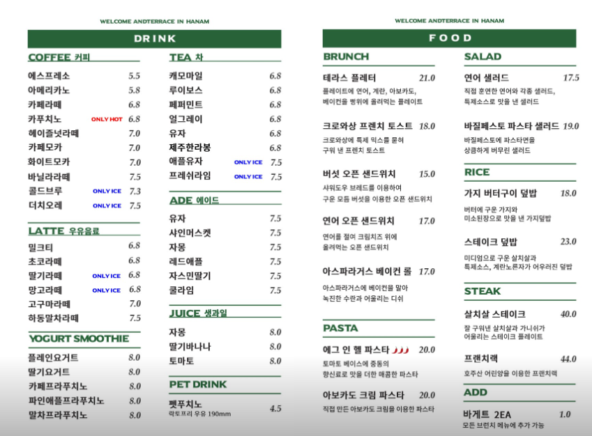 메뉴판입니다~