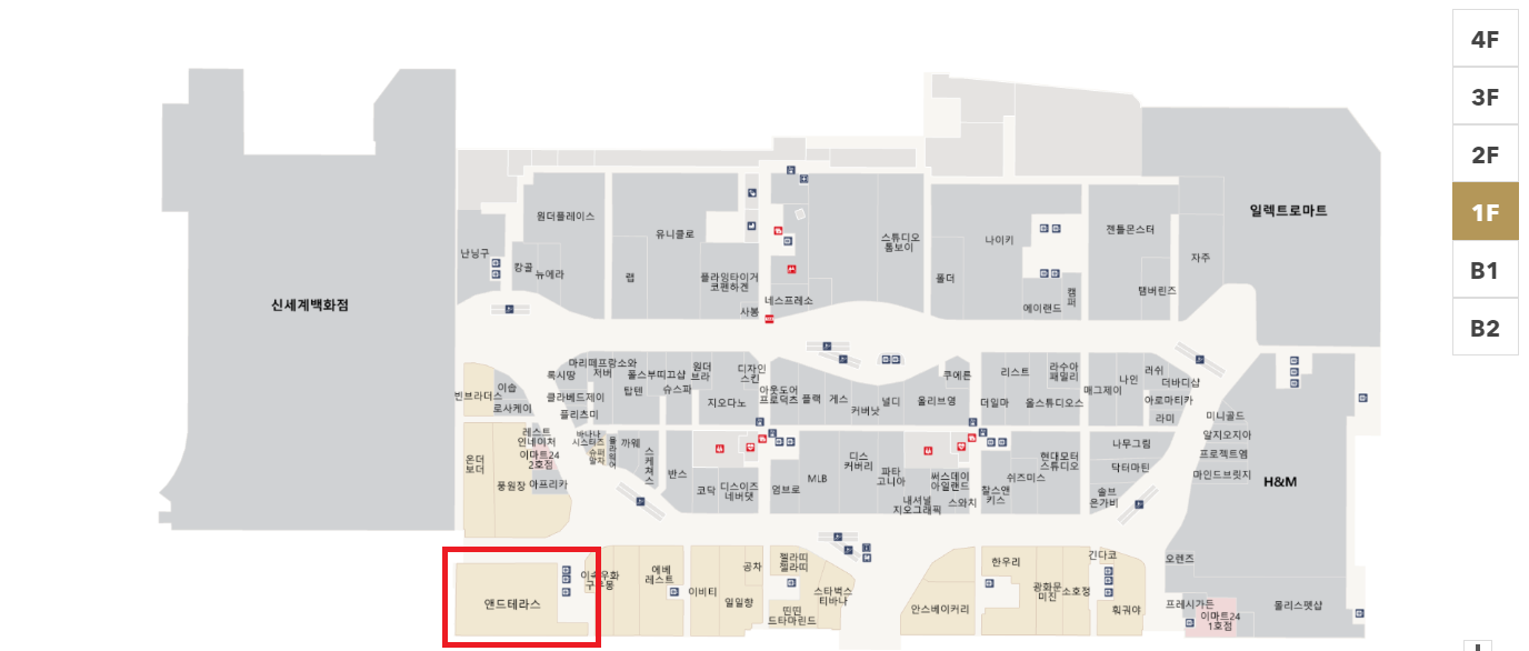 스타필드 하남 안 1층의 신세계백화점과 연결된 부분에 위치하고 있습니다.