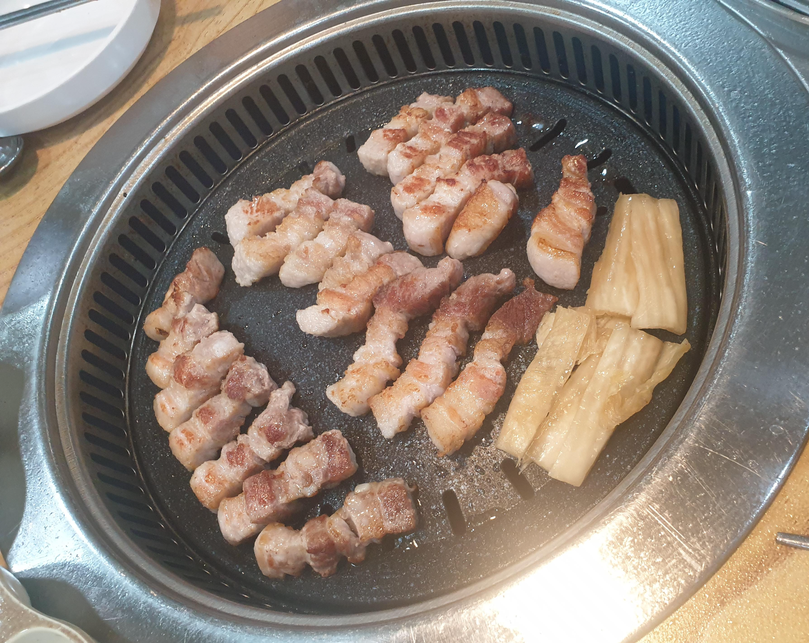 고기는 알바생분들 직접 구워주십니다. 치지직... 치지직... 고기굽는소리 너무 좋네요. 고기도 맛 있게 구워주셨습니다. 옆의 배추도 촵촵 싸먹었습니다. 존맛탱