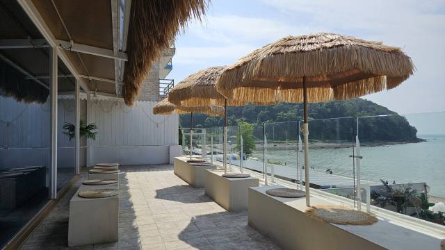 카페 앞이 바로 바다라서 잠깐 발에 물을 담글 수도 있고 1층, 2층에서 바다를 보면서 커피를 마실 수 있습니다.