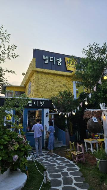 가게 안에서 바다를 보면서 커피를 마실 수 있고, 밖에서도 바다를 보면서 커피를 마실 수 있습니다. ㅎㅎ 밖에서 마시고 싶었지만 날씨가 너무 더워서 안에서 시원하게 마셨습니다ㅠ