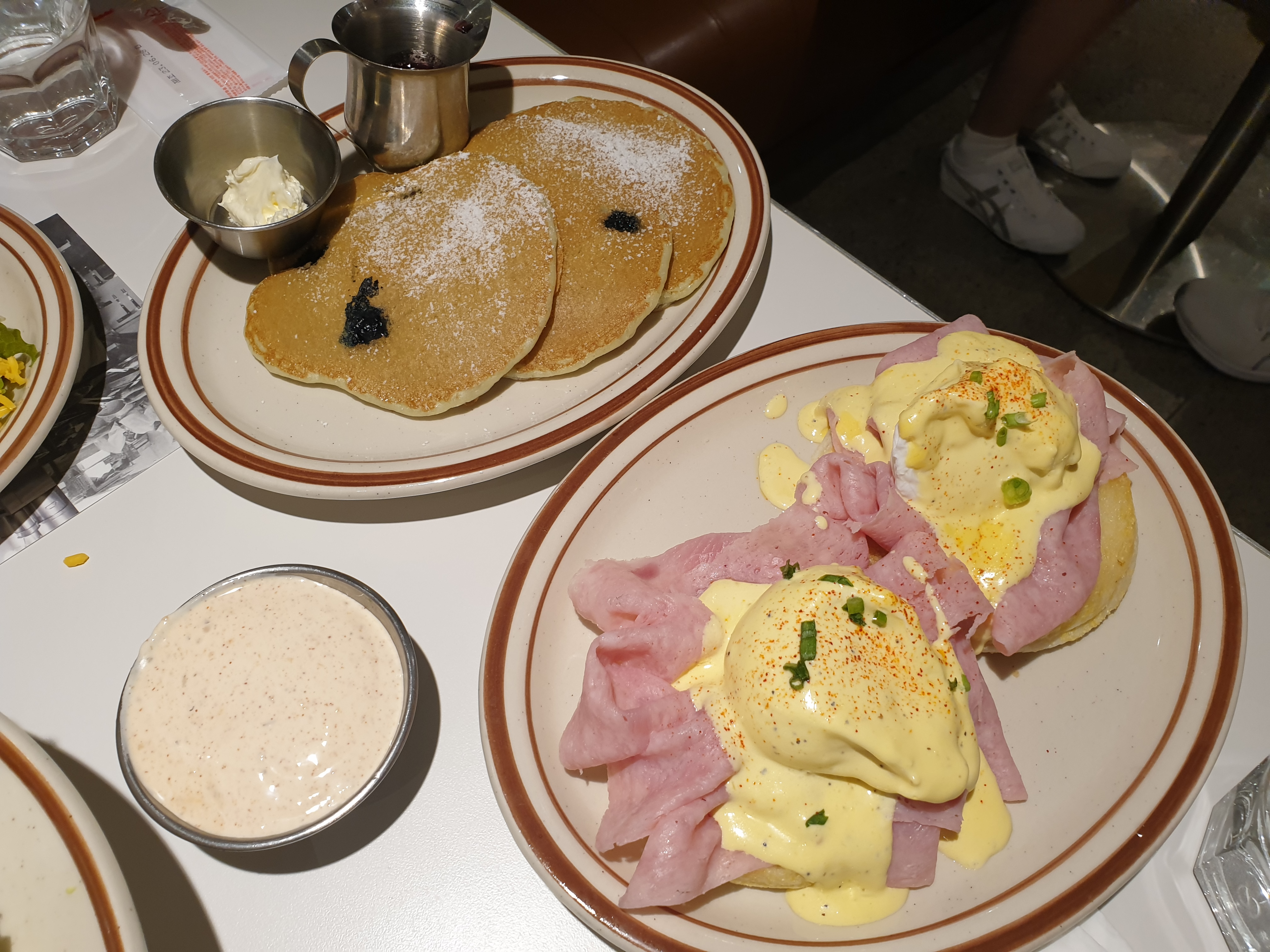 주문은 타코샐러드와 블루베리 팬케이크, 에그베네딕트, 에이드 두 잔을 시켜먹었어요. 타코샐러드는 신맛이 조금 있어 저한테는 호였지만 호불호가 있을듯한 맛 이었어요. 하지만 블루베리 팬케이크, 에그베네딕트는 그저 GOAT...