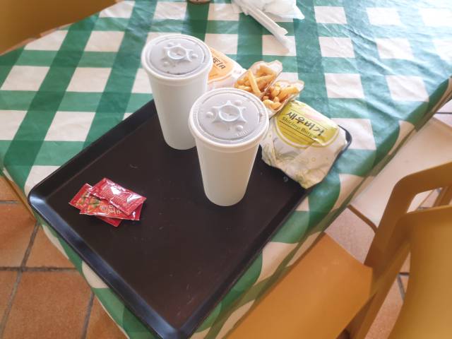 메가스톰을 타니 어느새 점심시간이 되어 점심은 아쿠아틱센터 안의 버거집에서 점심을 먹었습니다. ㅎㅎ 맛은 그냥 먹을만했습니다. 3층에 위치하고 있어서 위에서 내려다보면서 밥을 먹을 수 있었습니다. 위에서 보는 캐리비안베이의 경치가 좋았습니다~