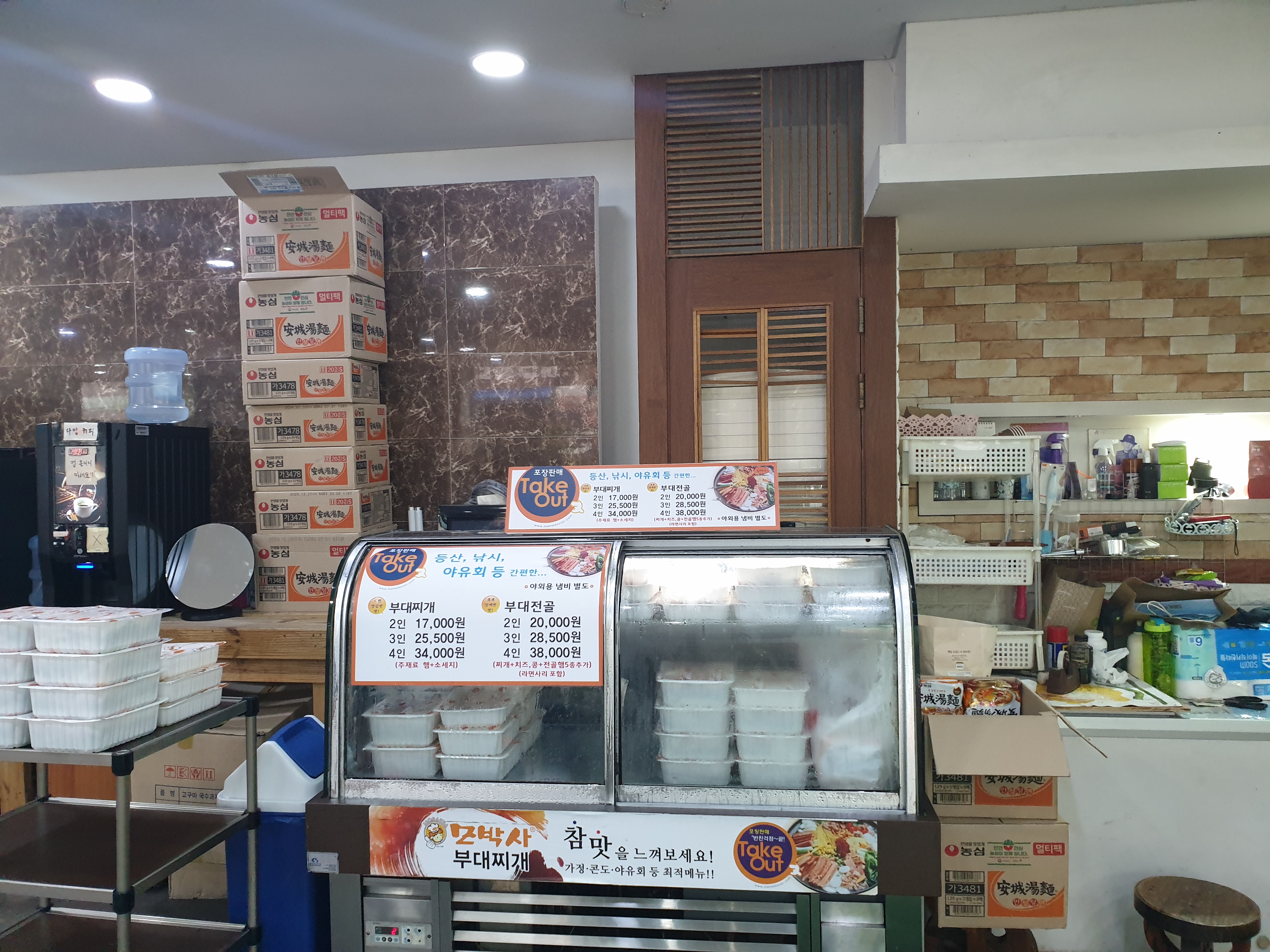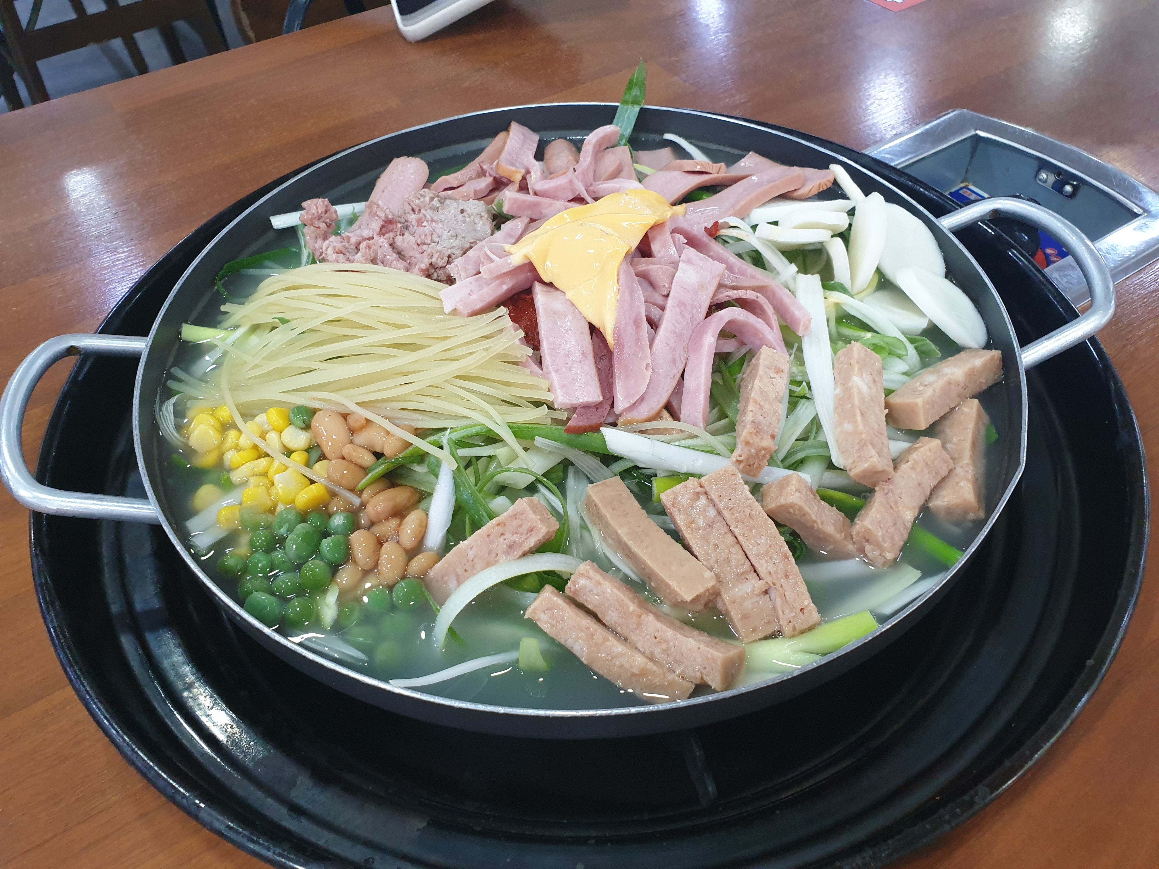 독특한 점은 부대찌개는 사리가 유료, 부대전골은 밥이 유료입니다. ㅎㅎ