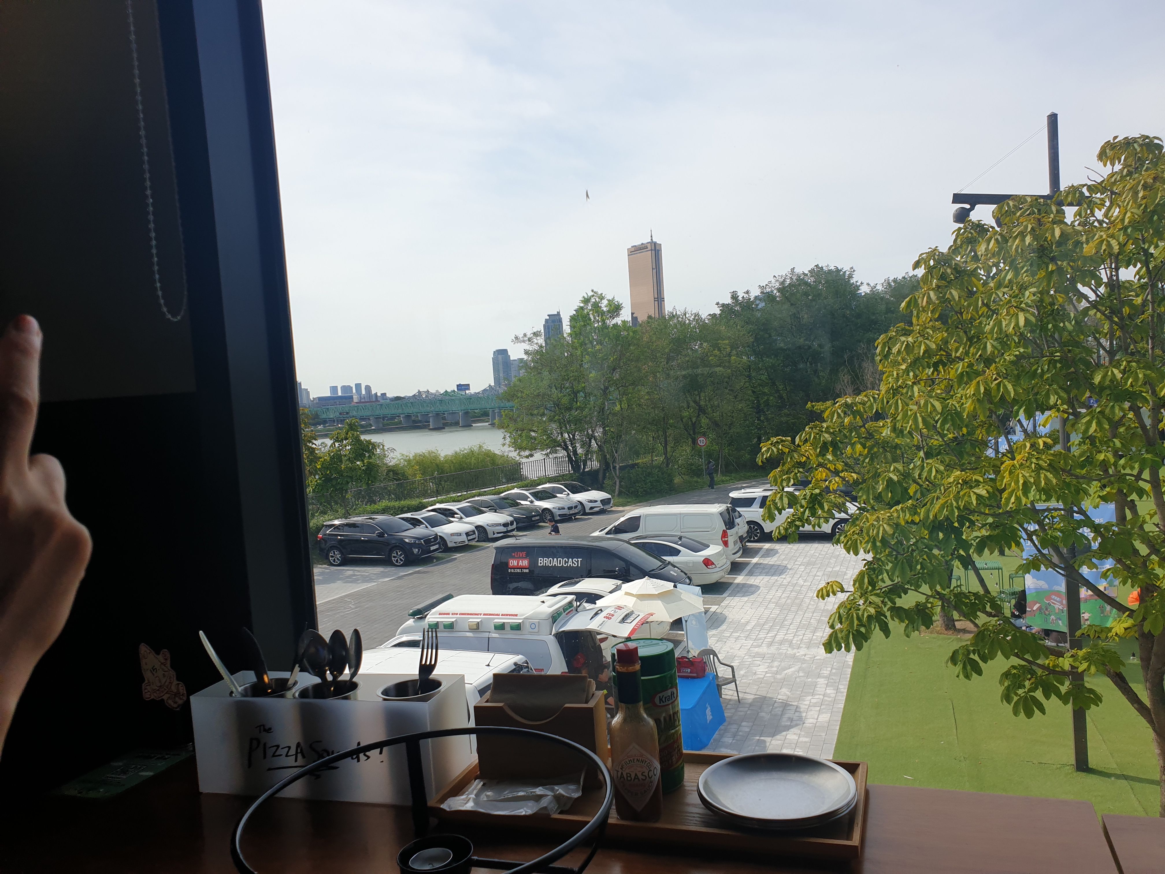노들섬에 도착하자마자 더피자사운즈에서 점심을 먹었습니다. 노들섬과 한강이 보이는 곳에서 피자와 파스타를 먹으면서 맥주 한 잔을 먹을 수 있는 피자집입니다.