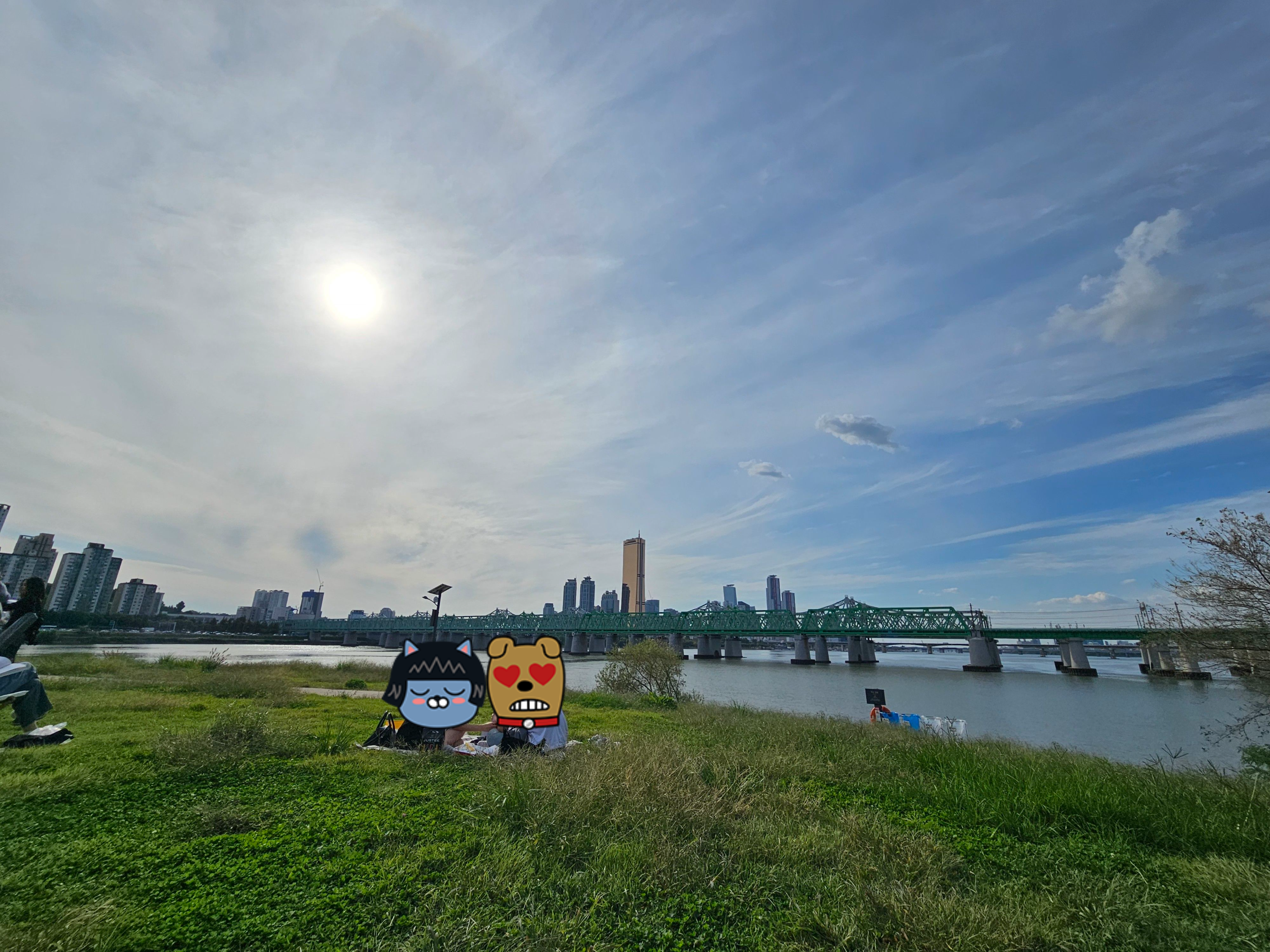 사람이 많을거라 예상은 했지만 정말 많았습니다. 저희도 조금만 늦게 왔으면 돗자리 필 때가 없었을 것 같네요. 노들섬 안에 있는 카페에서 커피를 사서 쉬는데 앉아있는 것만으로 힐링이 되는 느낌이었습니다. 다른 분들은 의자에 피크닉테이블을 가지고 오신 분들도 계셨는데 다음에 기회가 된다면 하나 장만해서 나들이를 다니면 좋을 것 같았습니다. ㅎㅎ