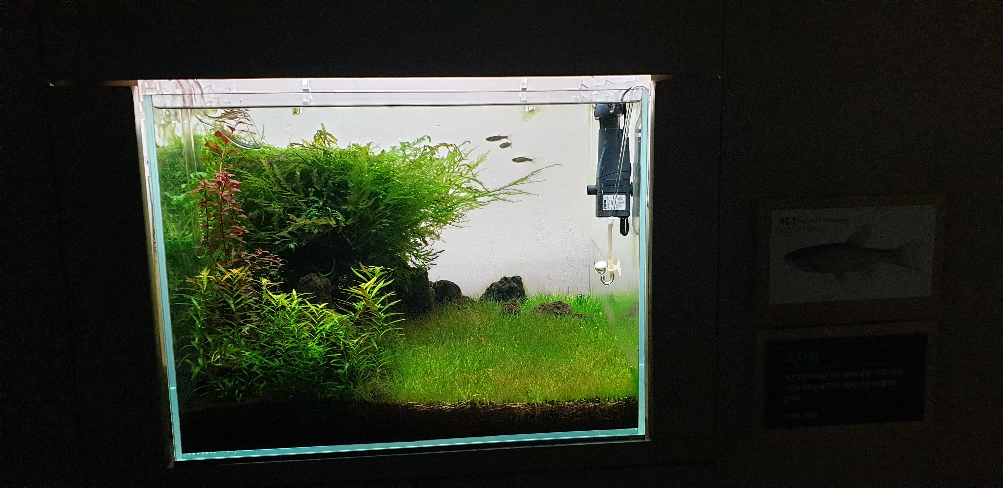 수족관을 너머서 수조전시관이 나타납니다. 사진에서는 별로 예쁘지 않는데 실제로 보면 너무너무 잘 해놨습니다. 실제로 물고기 키우시는 분들이 물고기보다는 어항에 돈을 더 투자한다고 하는데 인터넷에서나 보던 수조 끝판왕을 보는 느낌이었어요.