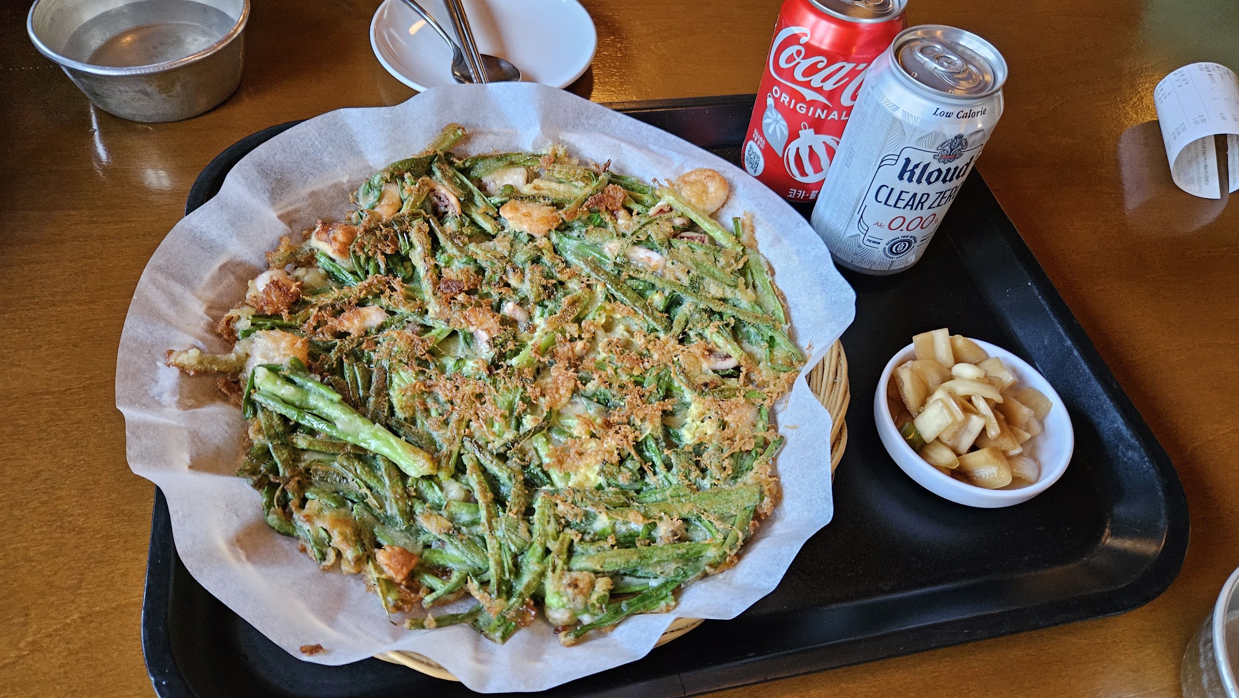 파전이 아니라 튀김을 먹는 느낌이라 제 취향이었습니다. 탄산과 딱 어울리는 느낌...! 맛나게 처묵처묵해줬습니다.