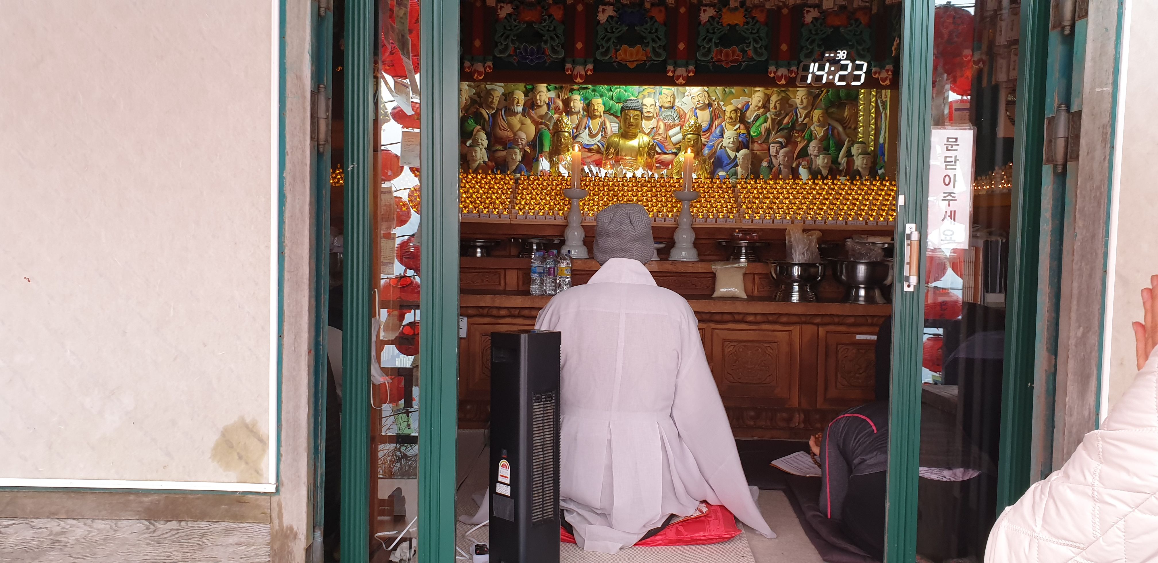 정상을 지나 저 멀리 절이 하나 보이길래 잠깐 들렀습니다. 작게 기도를 드리는 공간이 있었습니다. ㅎㅎ