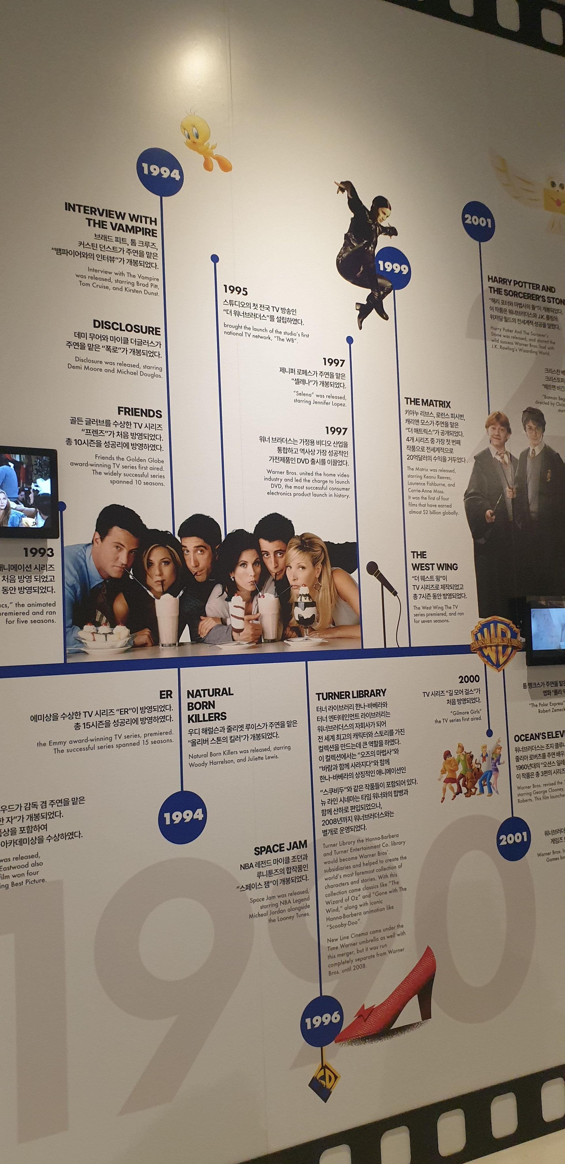 입장을 하니 워너브라더스 영화의 역사가 표시되어 있습니다. 아는 캐릭터, 영화가 나오면 반갑고 모르는 게 있으면 이런 것도 있구나 하고 지나갔습니다.