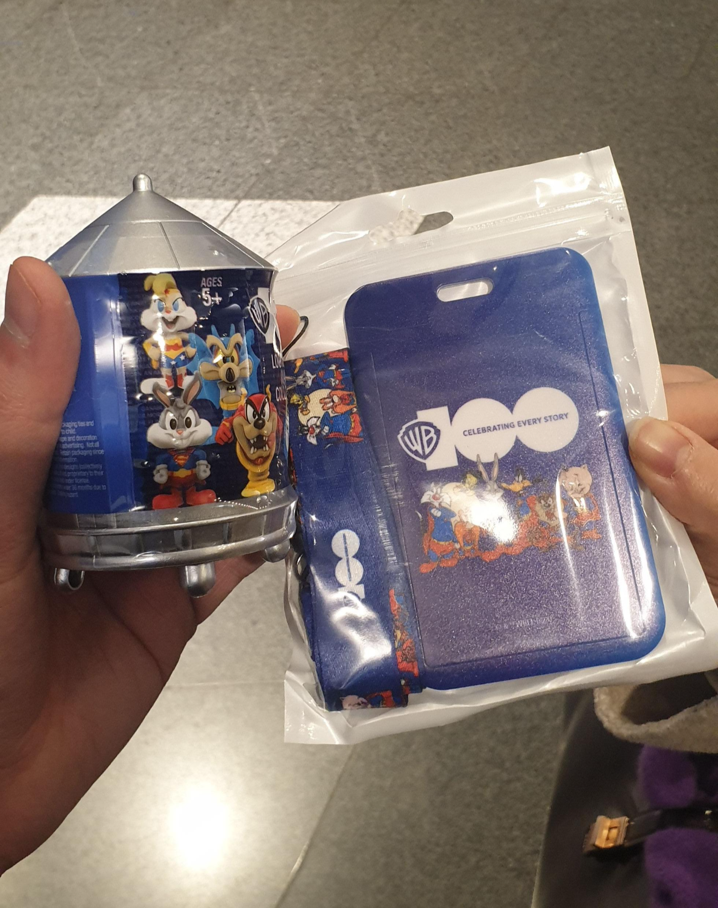 약간의 기다림 끝에 입장했습니다. 입장을 하면서 표와 같이 럭키드로우 추첨권을 줘서 바로 뽑기를 했습니다. 텀블러가 제일 갖고 싶었지만 목걸이와 작은 피규어가 나왔네요. 목걸이를 차봤는데 누가봐도 WB 직원같은 느낌의 목걸이었어요... ㄷㄷ