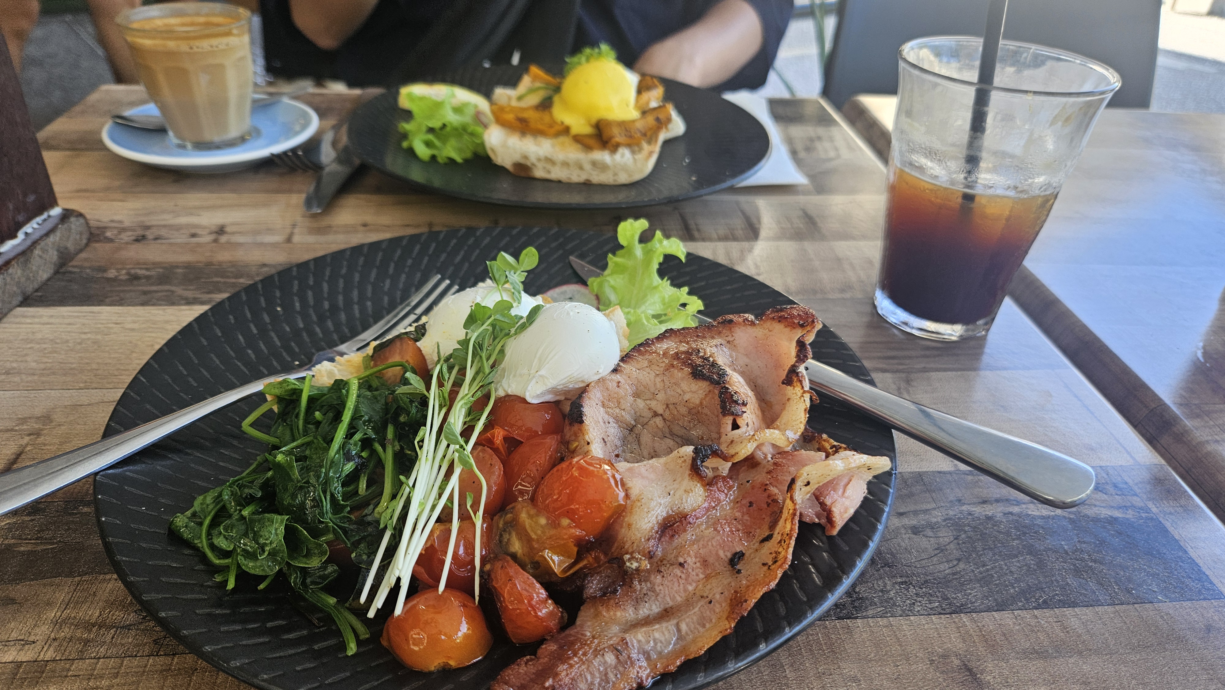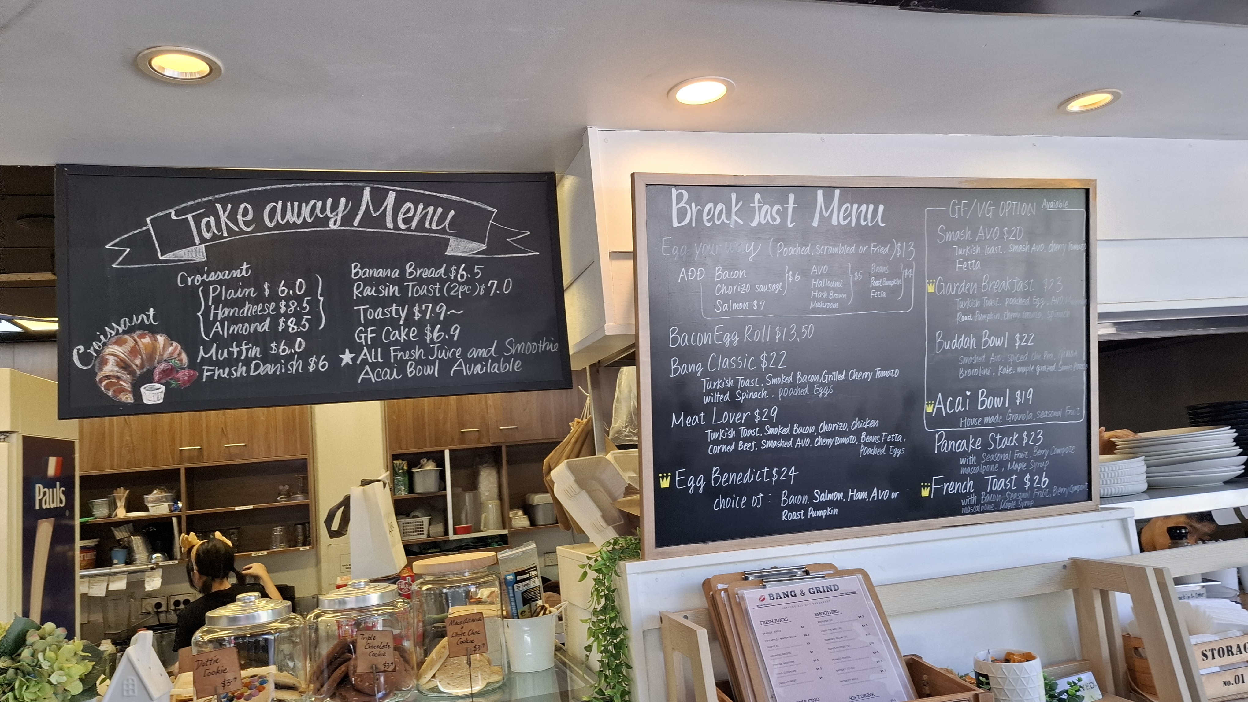어제 가이드님께 들었는데, 관광지라 저녁에는 영업을 하지만, 크리스마스에는 대다수 가게들이 쉬는 경우가 많다고 하더라고요. 그래서 저희도 한참을 돌아다니다가 Bang & Grind, The Esplanade라는 카페를 발견했어요. 역시나 유일하게 문을 연 곳이라 그런지 사람이 정말 많았지만, 다행히 한 자리가 있어서 조식을 먹을 수 있었습니다. 😅