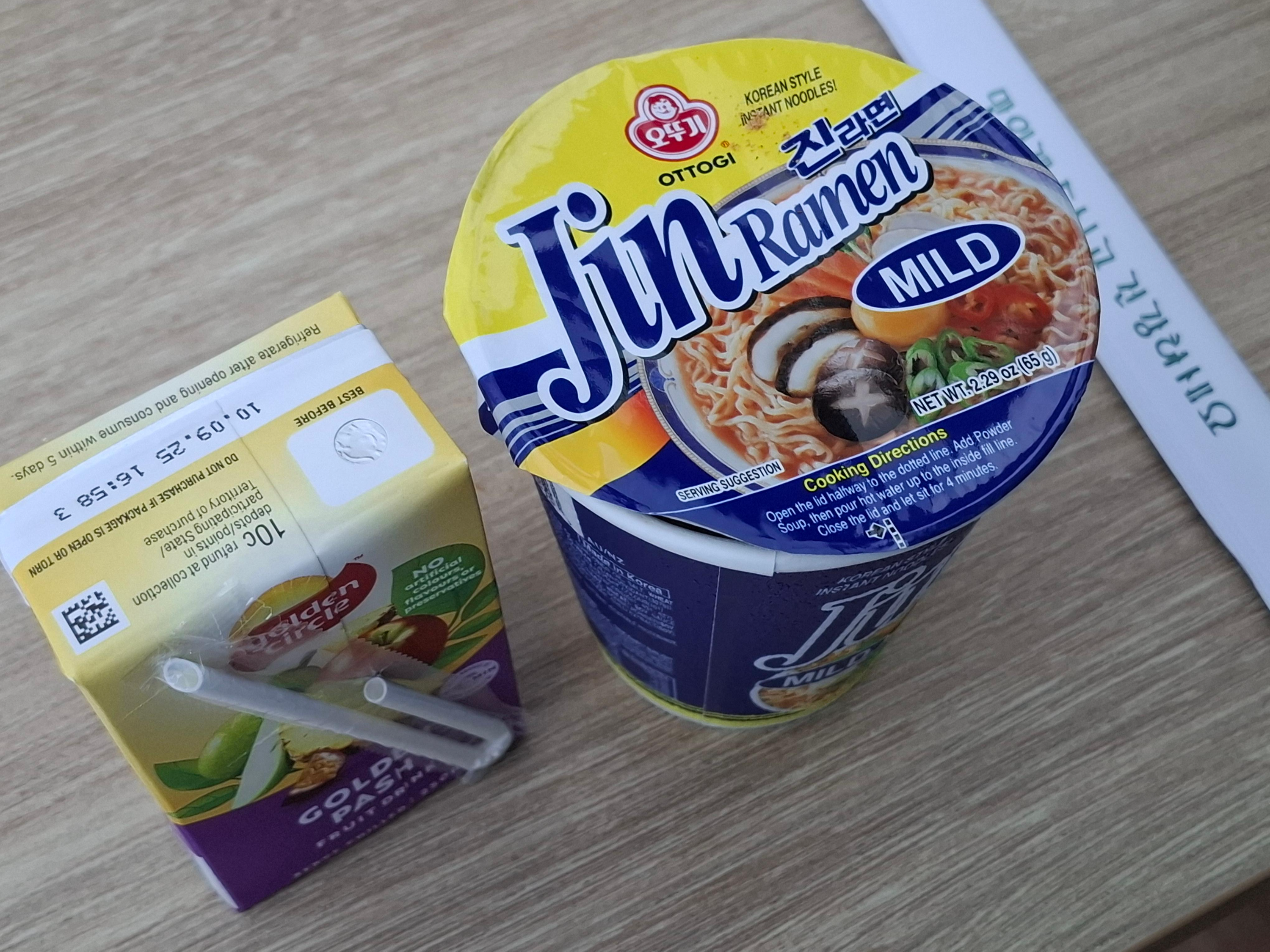 조식을 든든하게 먹어서 점심은 가볍게 먹을 계획이었어요. 그런데 마침 선물 안에 진라면 컵라면이 들어있어서 점심 메뉴로 결정! 🍜 호주에서 먹는 컵라면이라 그런지, 한국에서 먹을 때보다 몇 배는 더 맛있게 느껴졌어요.